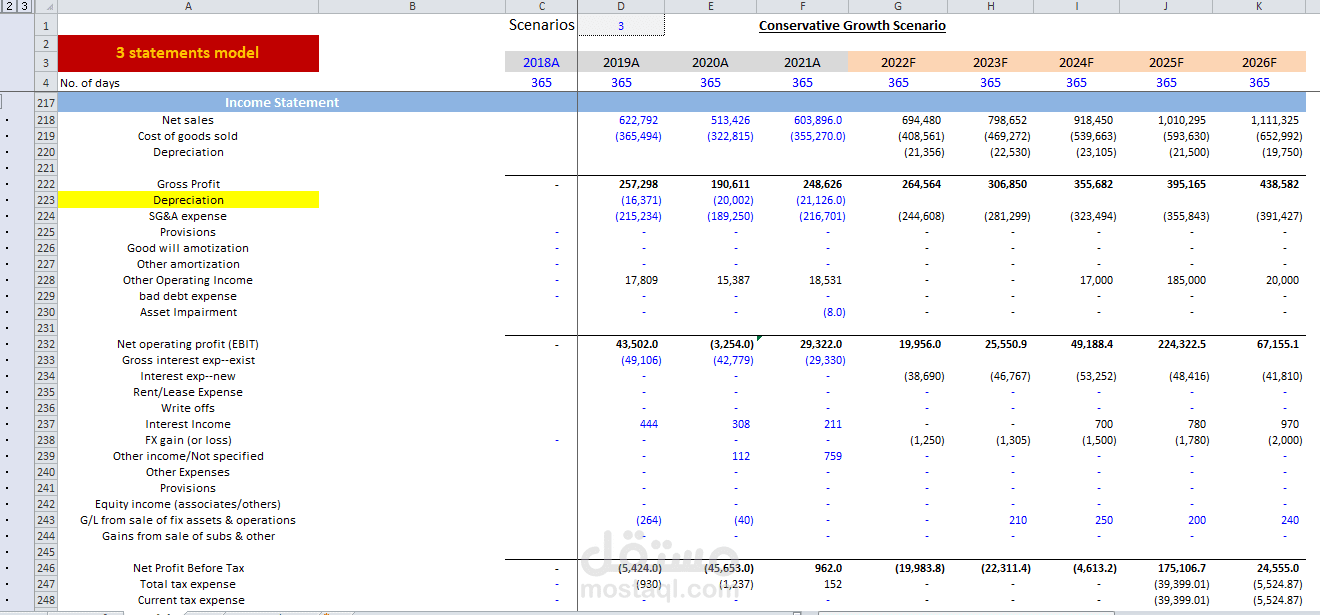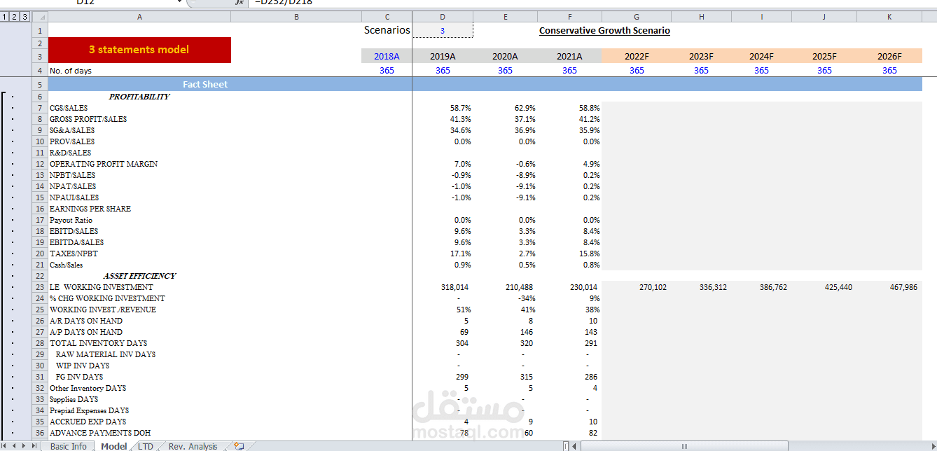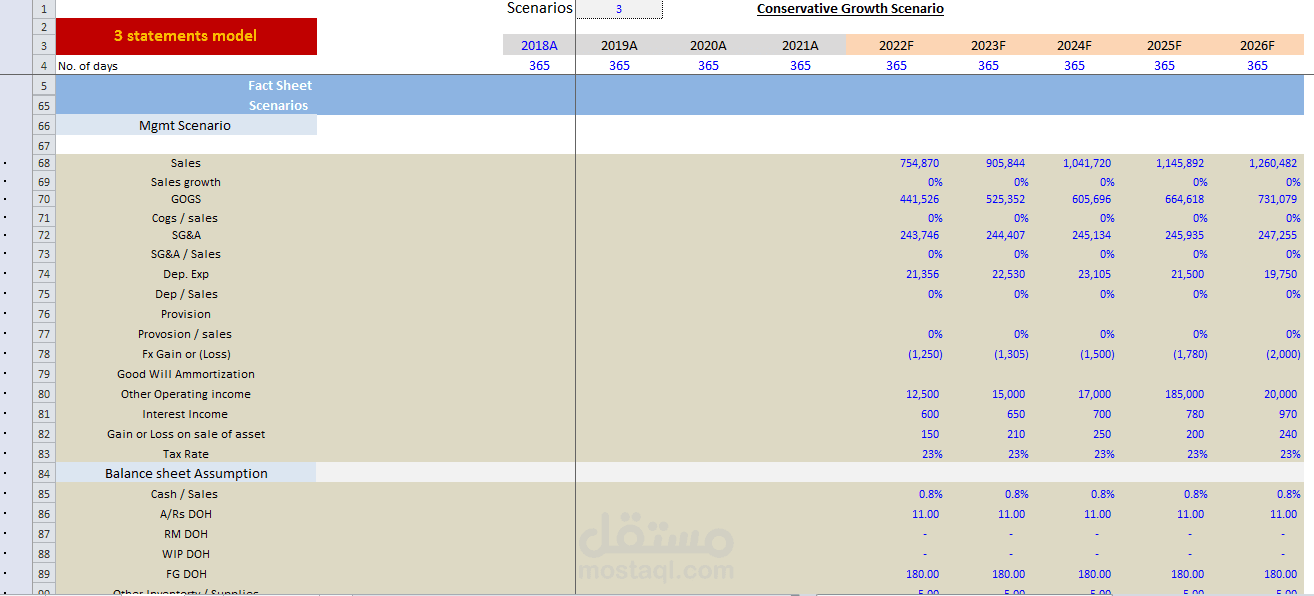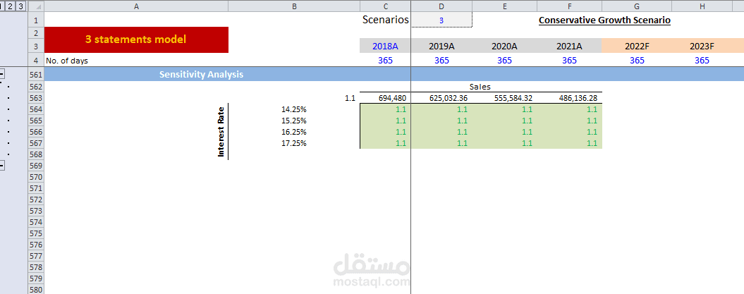 the forecast was built under three different scenarios (management , basic , & worst case) scenarios, under each scenario i used different assumptions that driving the sales forecast, cost, & interest rates.