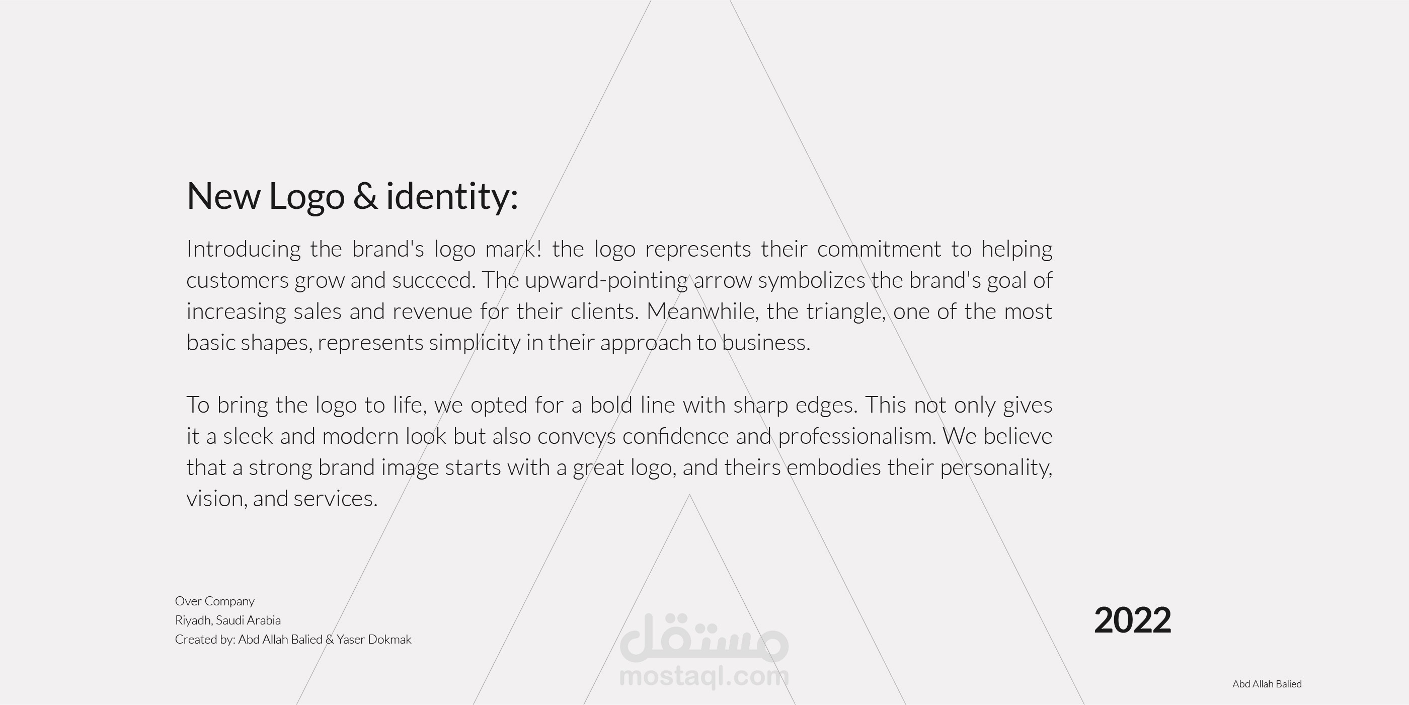 لإضفاء الحيوية على الشعار ، اخترنا خطًا عريضًا بحواف حادة. هذا لا يمنحها مظهرًا أنيقًا وعصريًا فحسب ، بل ينقل أيضًا الثقة والاحتراف. نحن نؤمن أن صورة العلامة التجارية القوية تبدأ بشعار رائع ، وتجسد صورتهم شخصيتهم ورؤيتهم وخدماتهم.