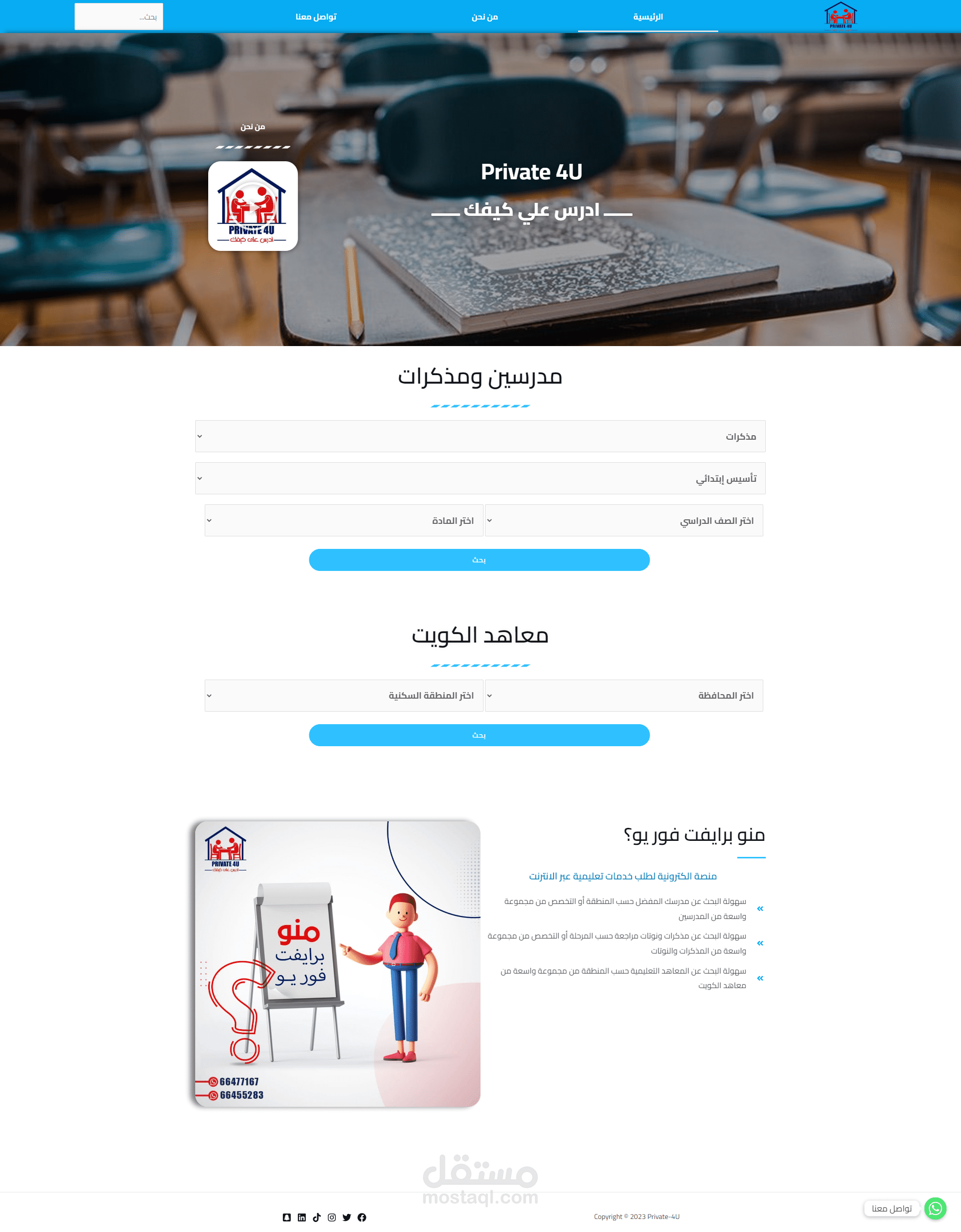 Private 4U هو موقع لتقديم الخدمات التعليمية تم بنائه بإستخدام منصة WordPress