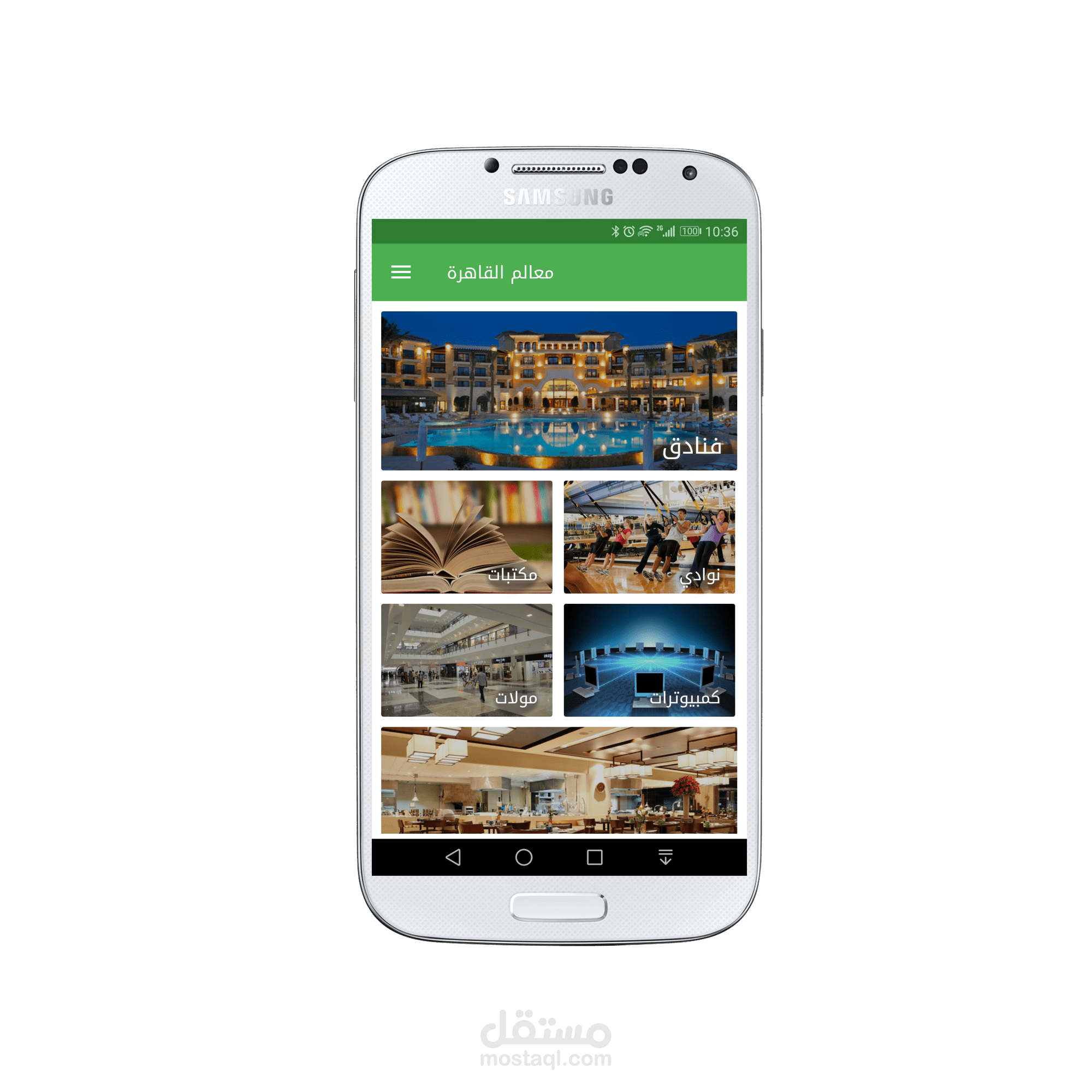 من فنادق ومكتبات ونوادي و مولات و سايبرات ومطاعم وسينمات ومحلات بيع الالكترونيات والمخابز والكافيهات ومحلات بيع الوجبات السريعة وغيرها