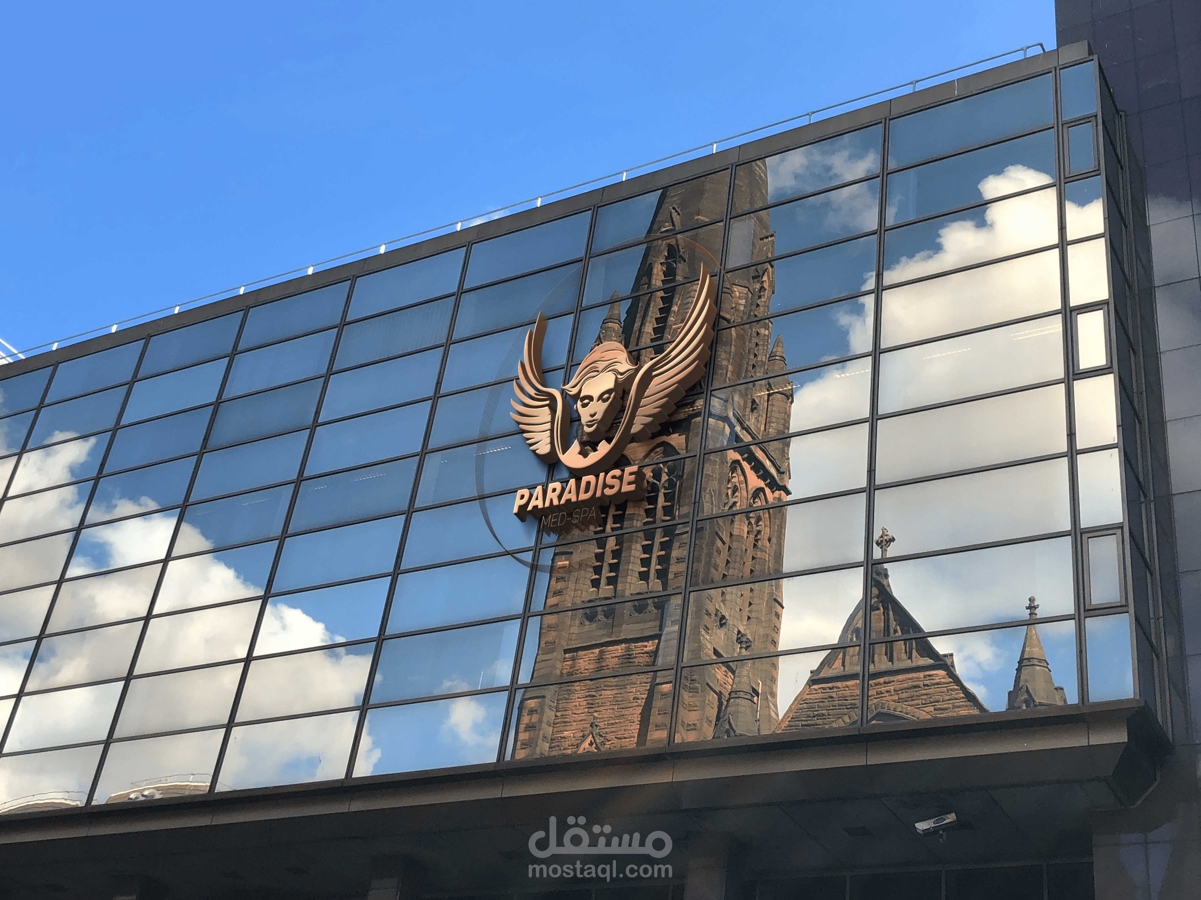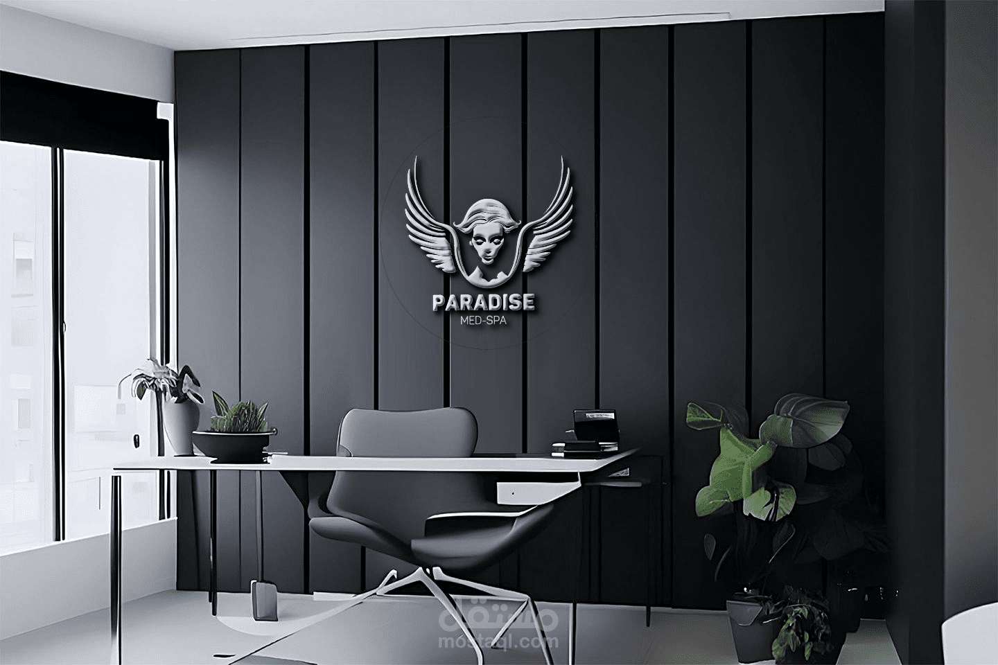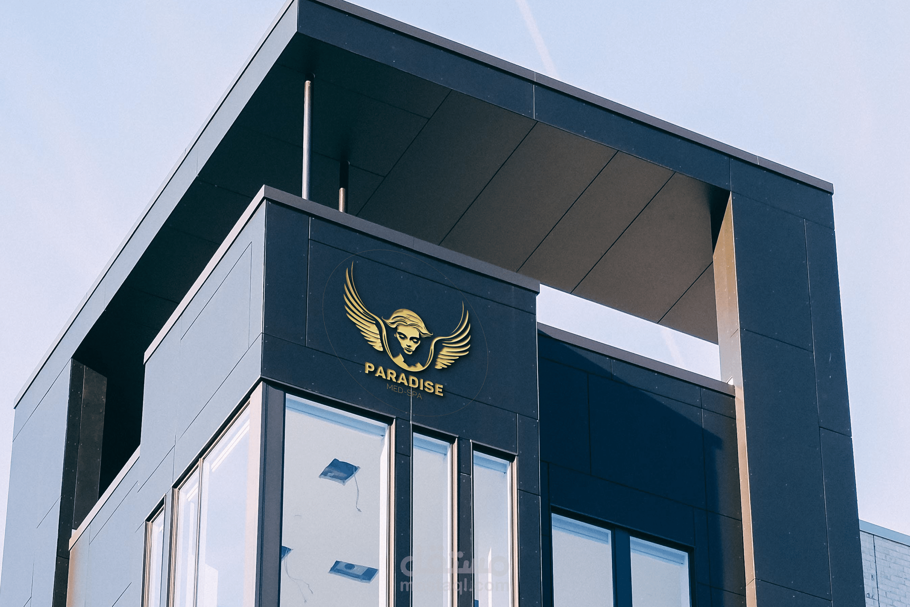 تم تصميم شعار Paradise Med Spa بناءً على رسم هندسي بزاوية مع اختيار مناسب للخط.