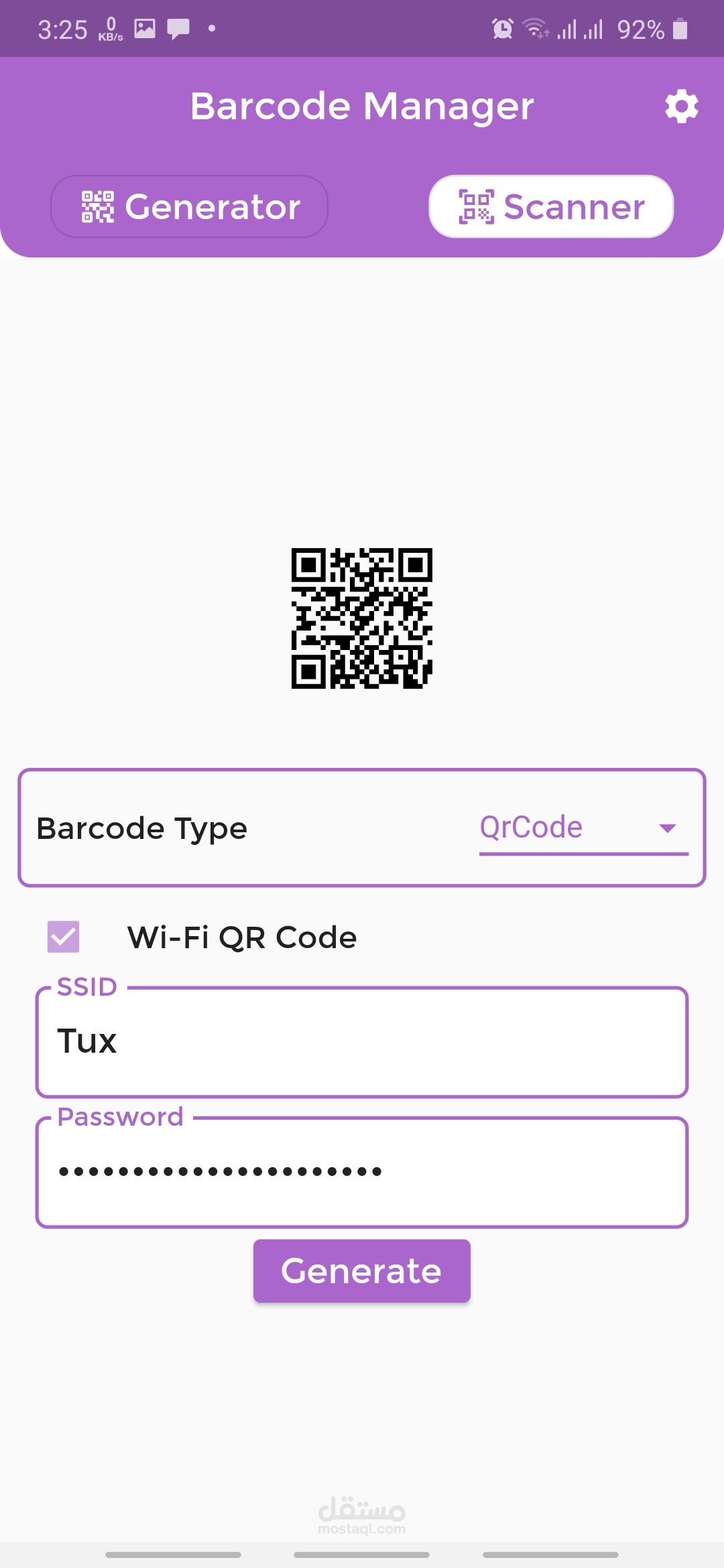 قم بإنشاء رمز QR لشبكة Wi-Fi من SSID وكلمة المرور.