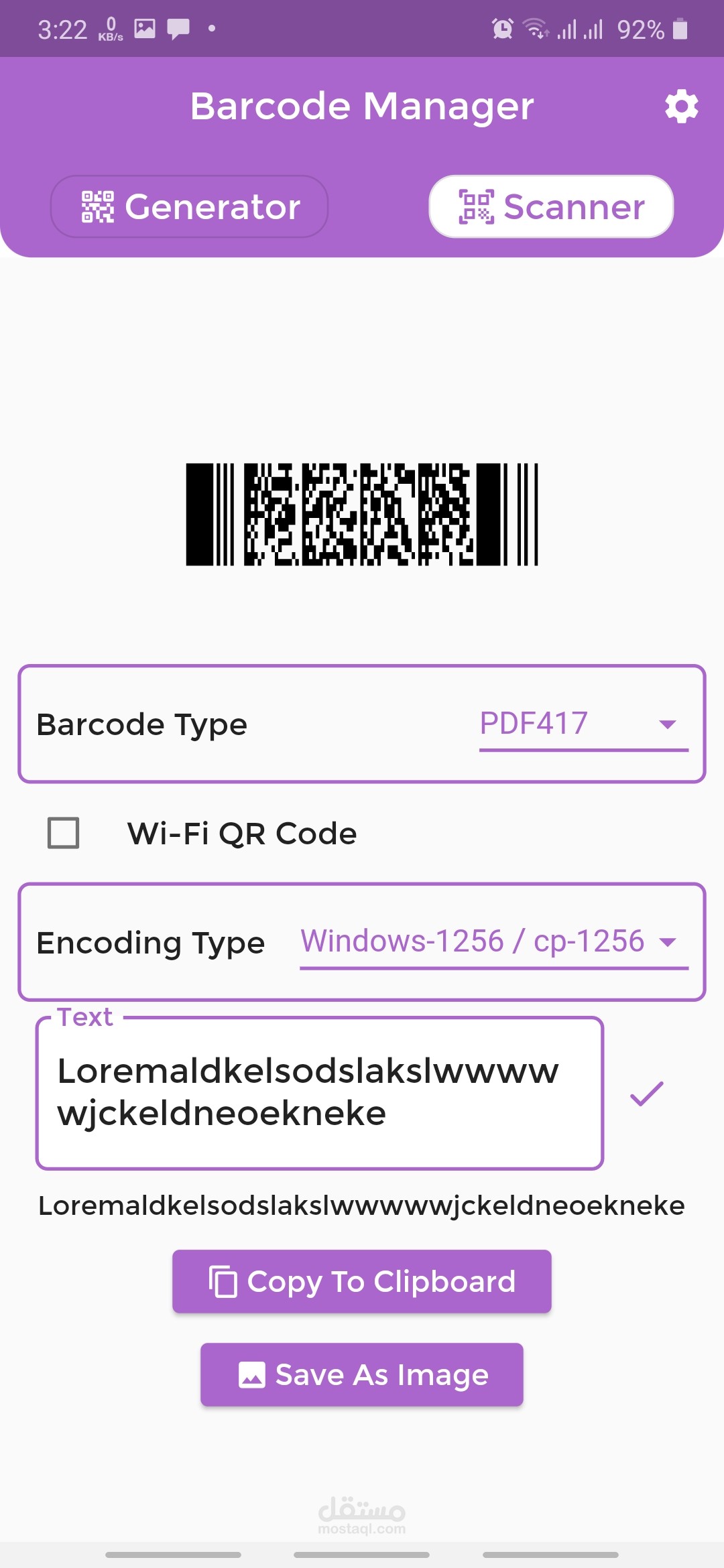 قم بتشفير النص الذي سيؤدي من خلاله إلى إنشاء رمز شريطي بتنسيقات متعددة.