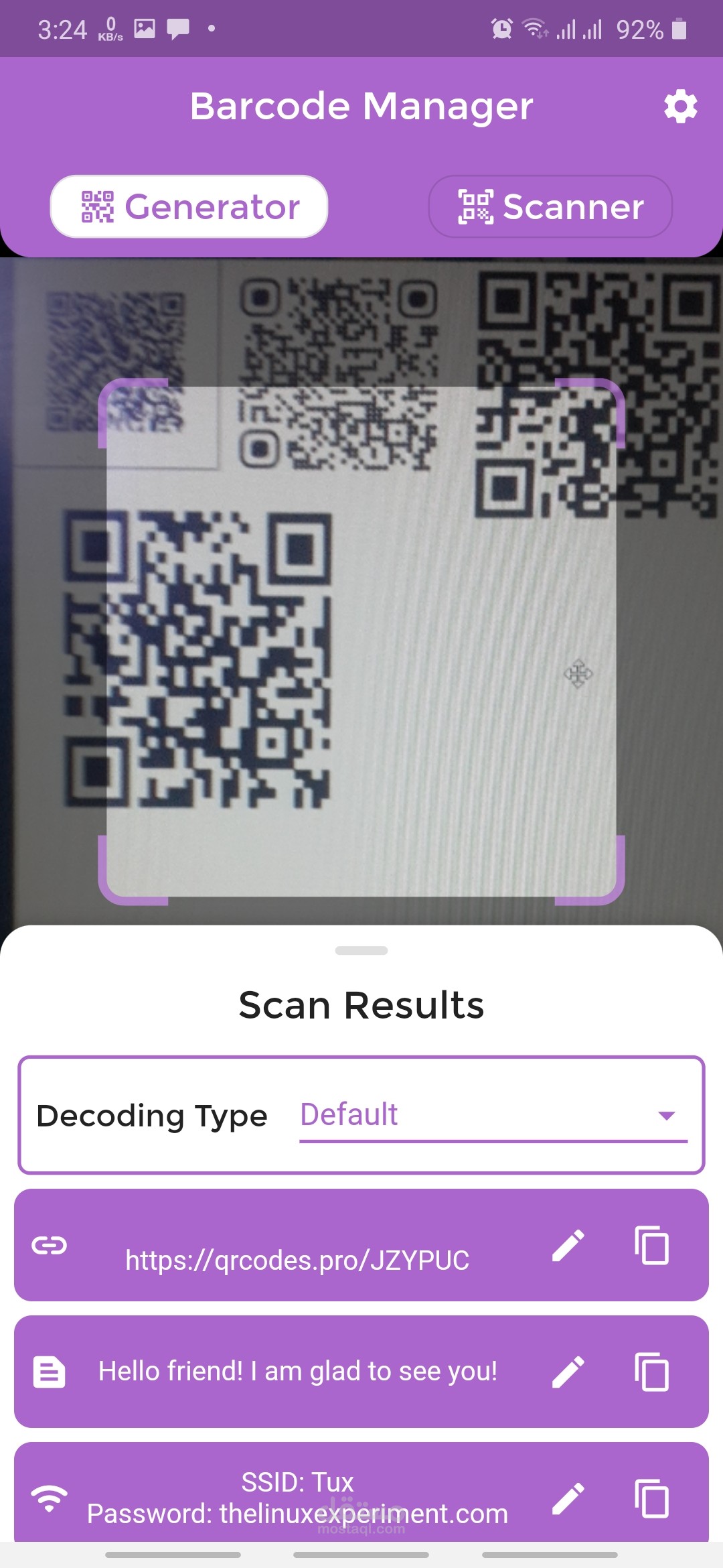 فك شفرة النص الذي سيتم تحويله من الباركود بعد عملية المسح بتنسيقات متعددة.