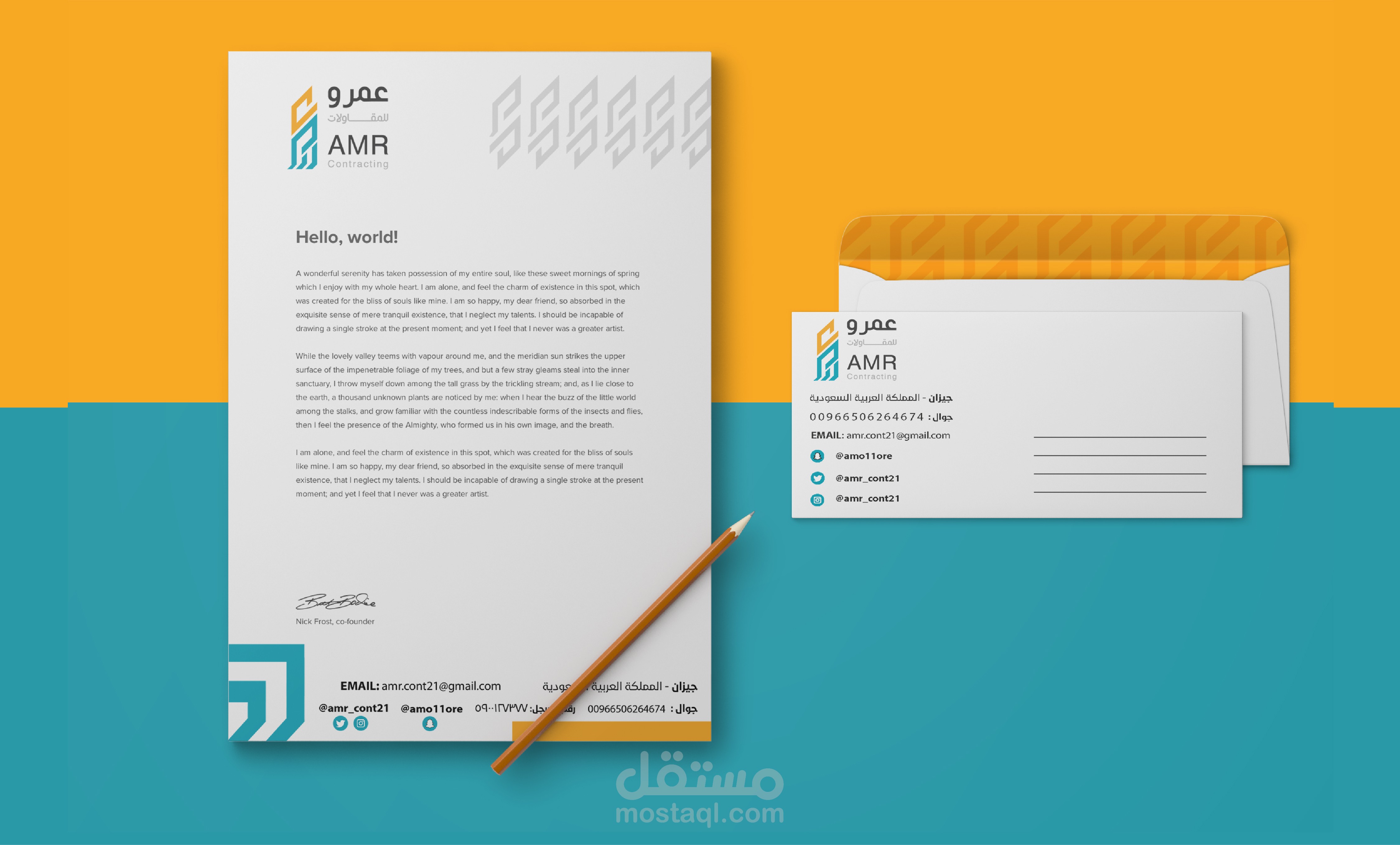 تصميم هوية بصرية شاملة اللوقو والورق الرسمي والبزنس كارد والظروف والاختام جميعها وتم تسليم العمل كامل خلال اسبوع