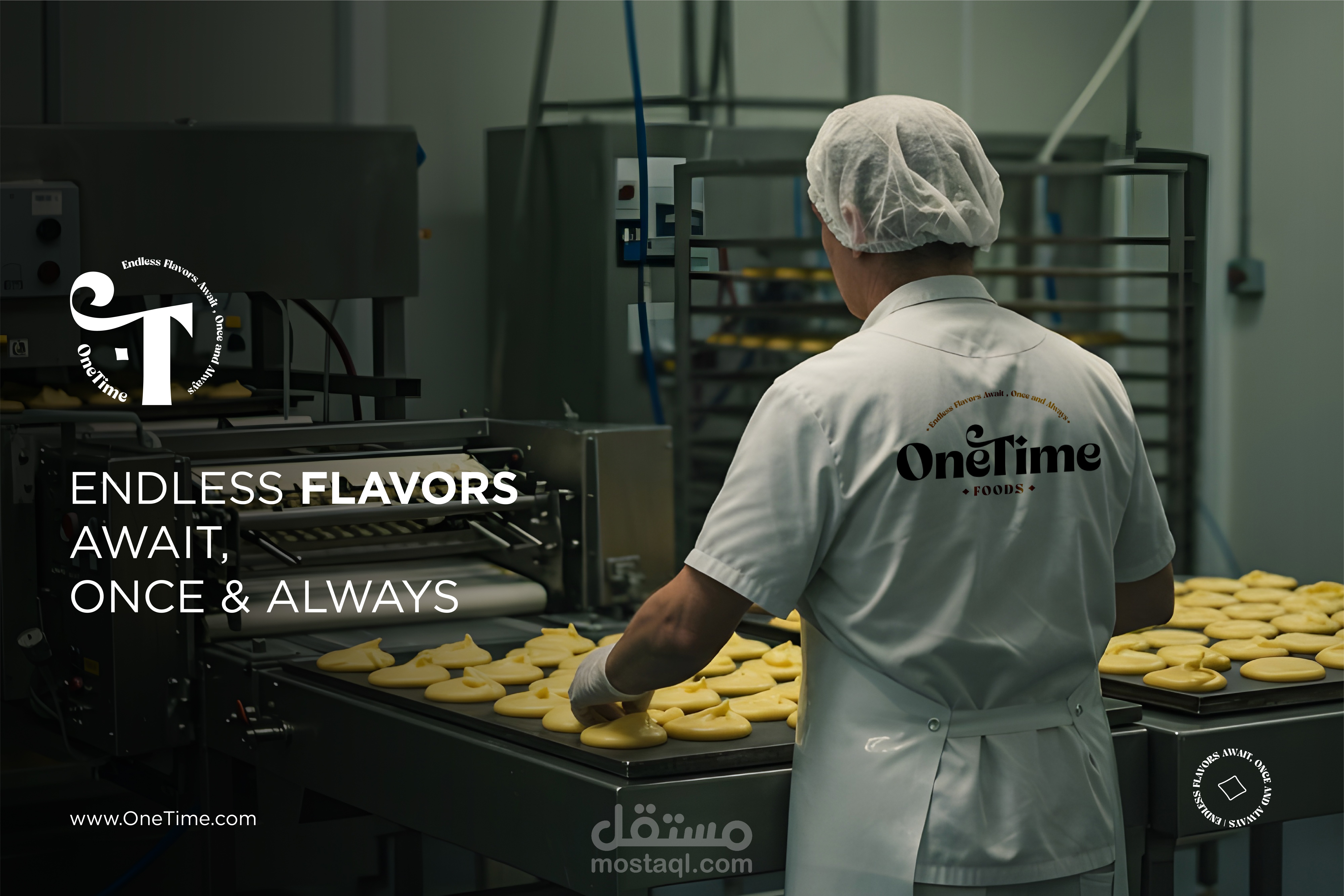 شركة OneTime هي شركة متخصصة في تصنيع المواد الغذائية , تم تصميم الشعار ليناسب رسيمة الشركة الام لهذه الصناعات مع اضافة لمسه من الحركة و استخدام خط مناسب للإيحاء بمجال الشركة .