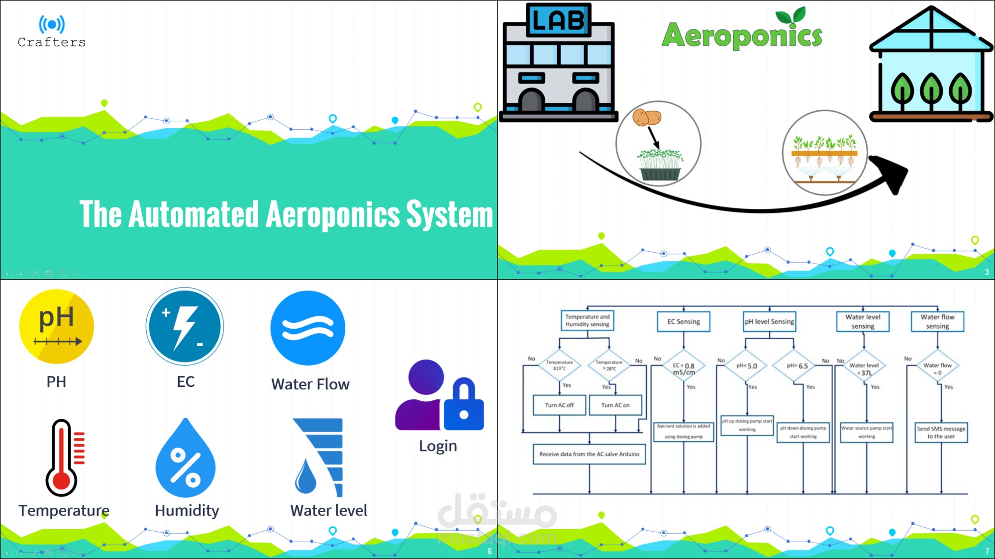 عرض تقديمي يوضح الفكرة الرئيسية لأحد مشروعات التخرج الطلابية، يقدم فكرة تصميم نظام أوتوماتيكي يعتمد على تقنية إنترنت الأشياء لإدارة المزارع الهوائية، العرض مدعم بالصور والرسوم التوضيحية وخطط العمل وبشكل يضمن وصول الأفكار بشكل منظم لجميع المستمعين بإختلاف خليفتهم العلمية.