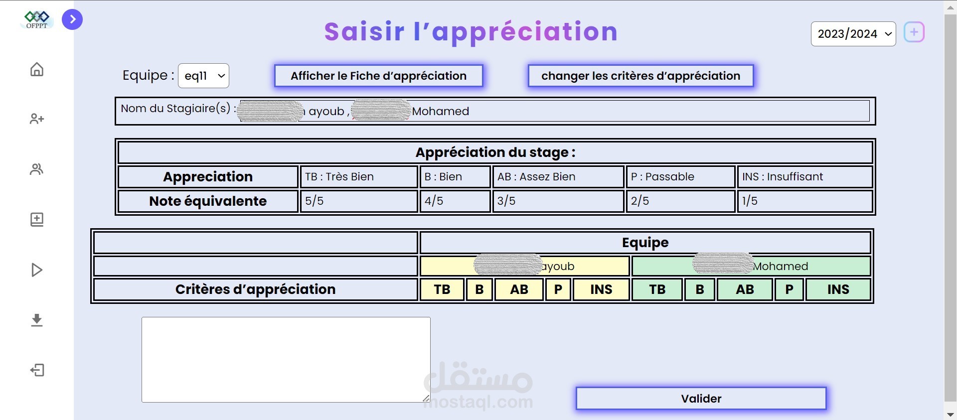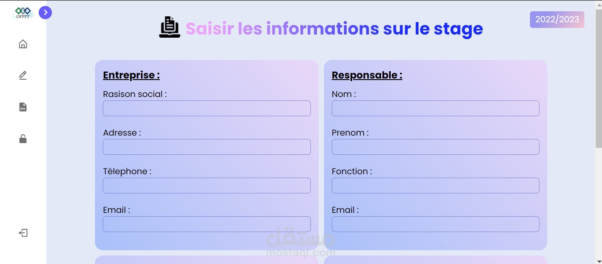 يهدف المشروع إلى تطوير نظام لإدارة التدريبات ، يشارك فيه ممثلان: المتدربون والمدربون (لجنة التحكيم). سيقوم المدرب بإنشاء حساب جماعي لمتدرب واحد أو أكثر ، وتحديد مواعيد جلسات العرض التقديمي الخاصة بالتدريب في شركة، وإدخال تقدير الشركة وإطلاق عداد لتسجيل الملاحظات أثناء العرض التقديمي. سيقوم المتدرب بتسجيل الدخول باستخدام اسم المستخدم وكلمة المرور الخاصين بالفريق، وإدخال معلومات حول التدريب، مع رفع المستندات المطلوبة. يتطلب المشروع التخطيط وإعادة صياغة المواصفات وتصميم الواجهة وإنشاء قواعد البيانات والبرمجة والاختبار. الفريق لديه 70 يومًا ، مع أطر زمنية محددة مخصصة لكل خطوة.
