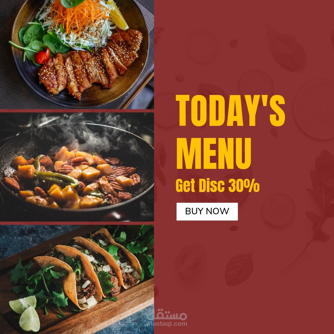 صور لأطباق اكل و كلام بجانب التصميم و اضافه نسبه خصم