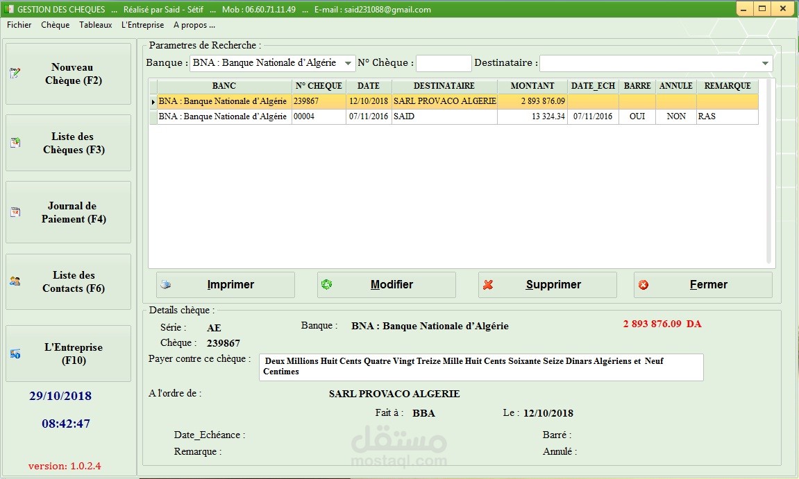 * Pour régler le décalage d'impression : changer les valeurs x et y des éléments dans la table des banques