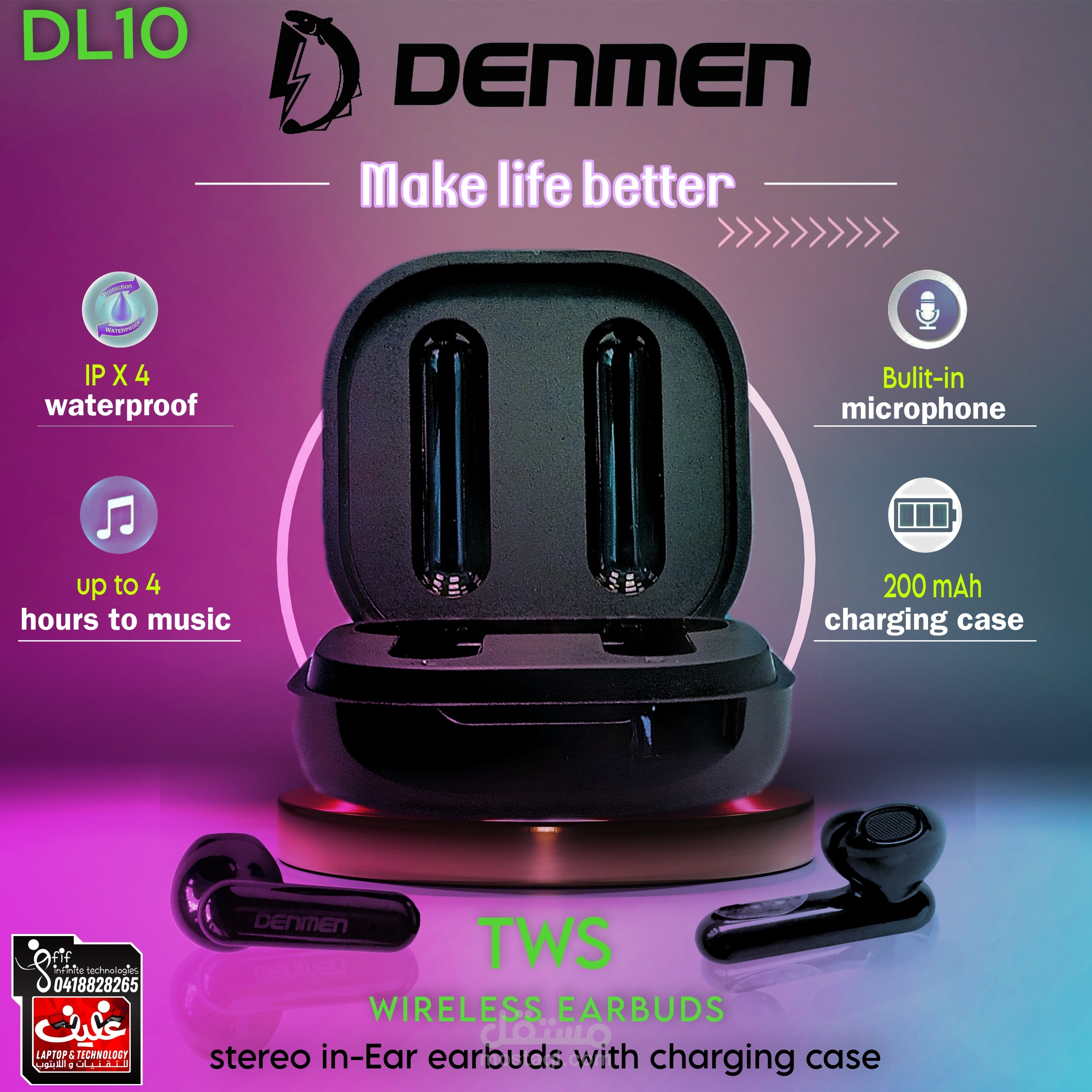 بوستر إعلاني لسماعات denmen توضح فيه ميزات السماعات