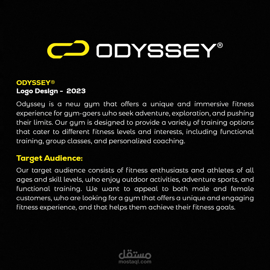 Odyssey هي صالة ألعاب رياضية جديدة تقدم تجربة لياقة فريدة وغامرة لرواد الجيم الذين يبحثون عن المغامرة والاستكشاف وتجاوز حدودهم. تم تصميم صالة الألعاب الرياضية لدينا لتوفير مجموعة متنوعة من خيارات التدريب التي تلبي مختلف مستويات اللياقة والاهتمامات ، بما في ذلك التدريب الوظيفي ، والدروس الجماعية ، والتدريب الشخصي.