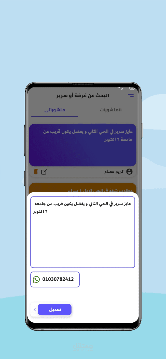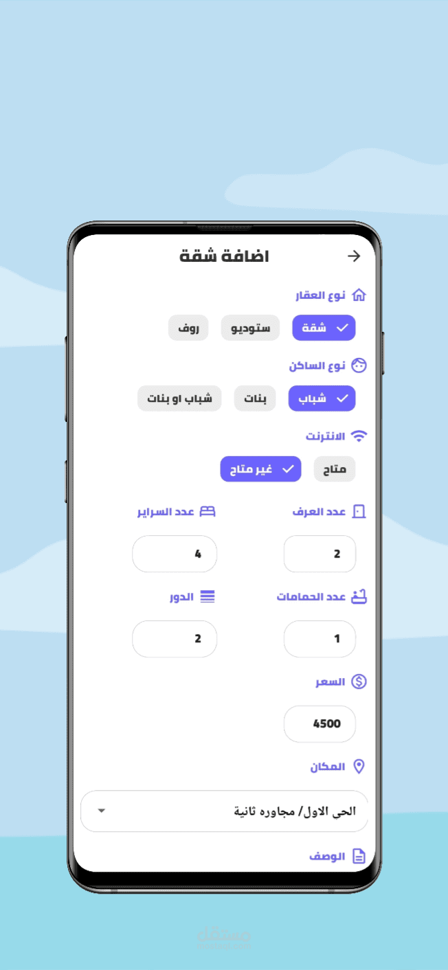 - إضافة شقة جديدة متاحة للإستئجار مع اضافة خصائصها ( رقم الدور - عدد السرير - عدد الغرف - الخدمات ..الخ).
