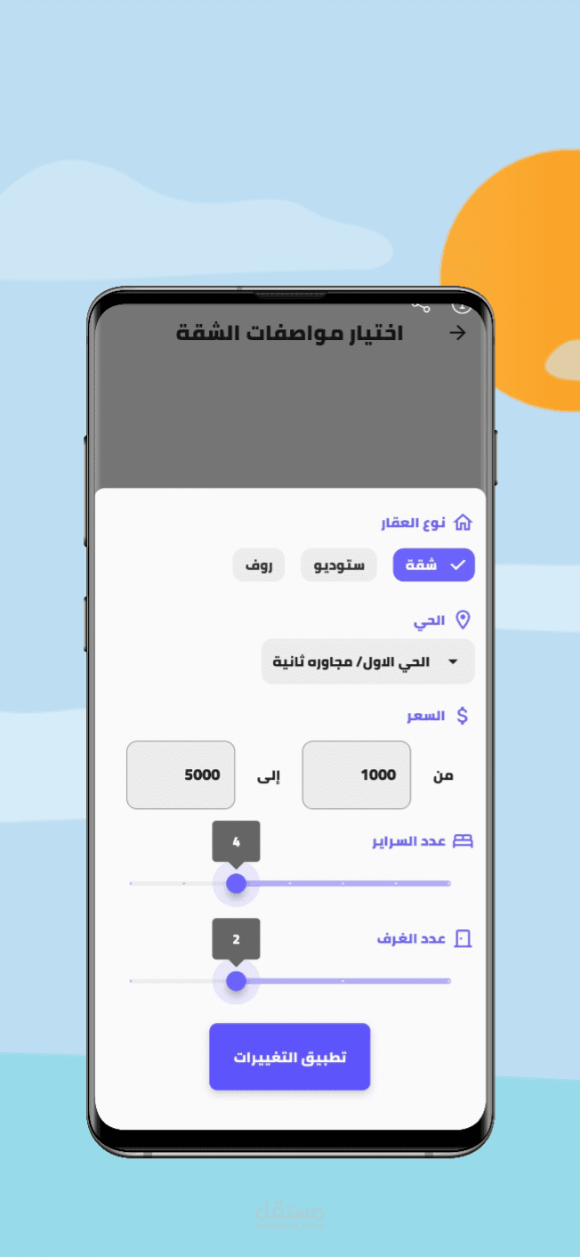 - إمكانية فلترة الشقق الموجودة حسب رغبة المستخدم.