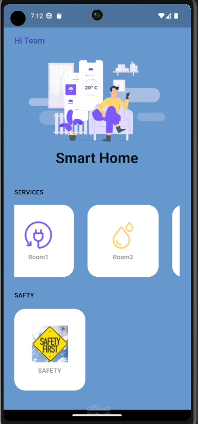 بيت مصمم بواسطة flutter يتحكم في الانارة والمراوح والابواب