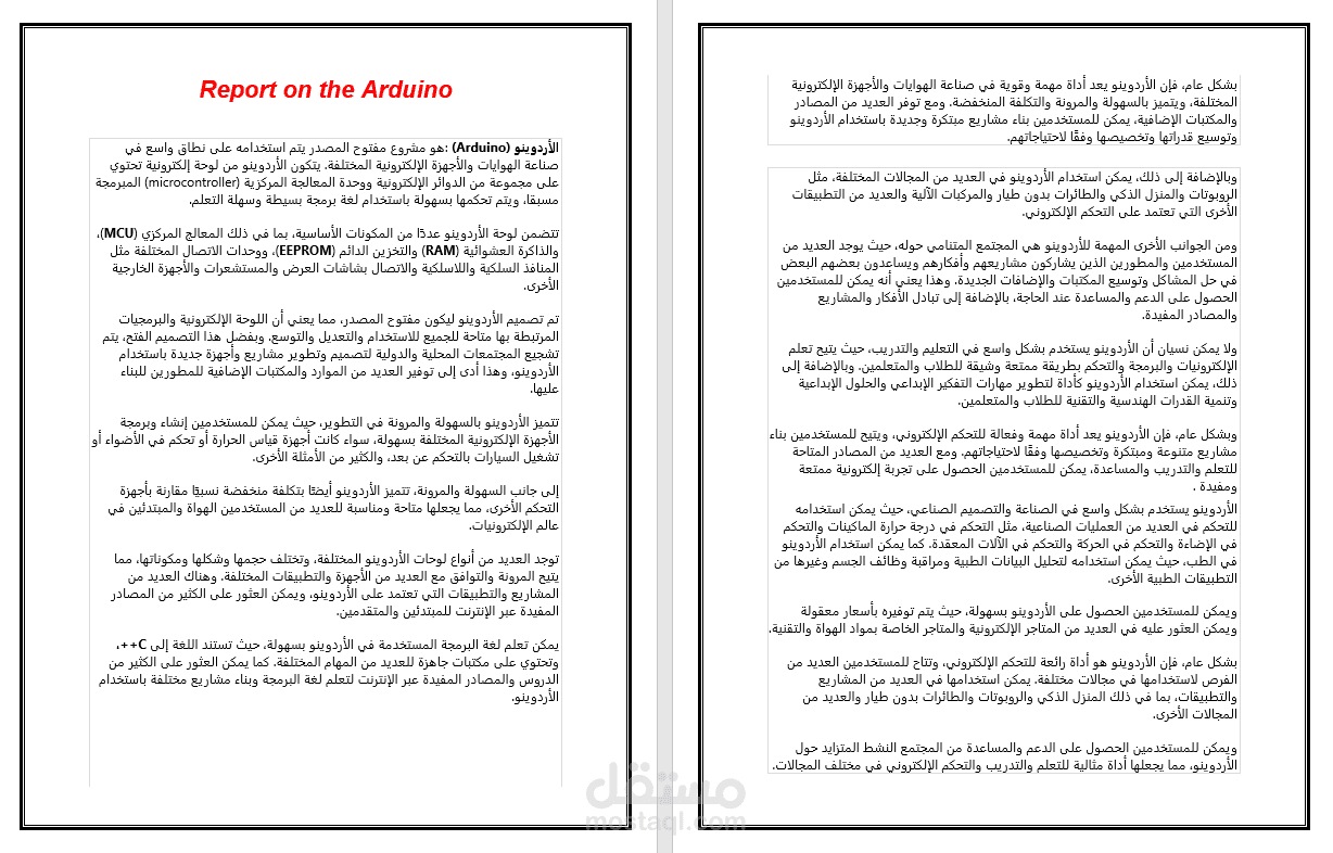 الأردوينو (Arduino) :هو مشروع مفتوح المصدر يتم استخدامه على نطاق واسع في صناعة الهوايات والأجهزة الإلكترونية المختلفة. يتكون الأردوينو من لوحة إلكترونية تحتوي على مجموعة من الدوائر الإلكترونية ووحدة المعالجة المركزية (microcontroller) المبرمجة مسبقا، ويتم تحكمها بسهولة باستخدام لغة برمجة بسيطة وسهلة التعلم.