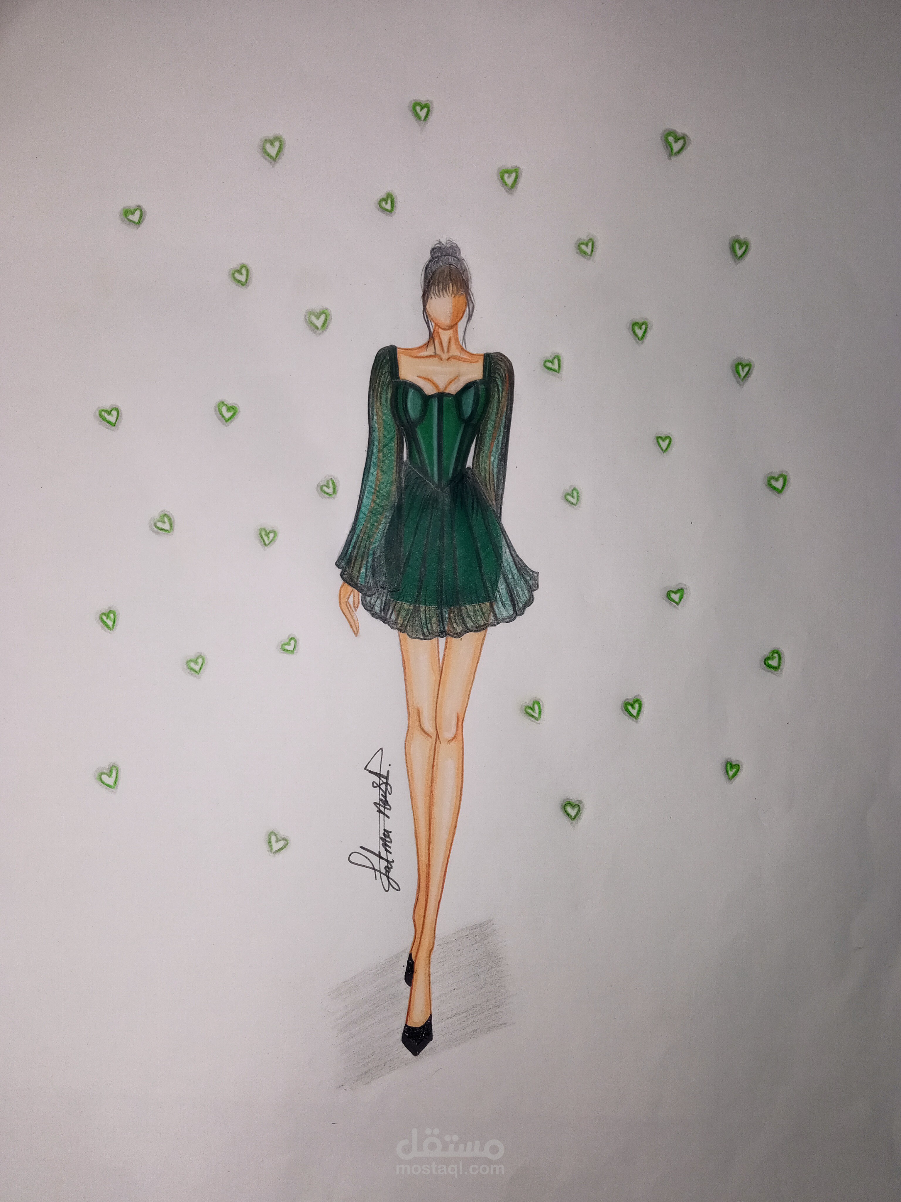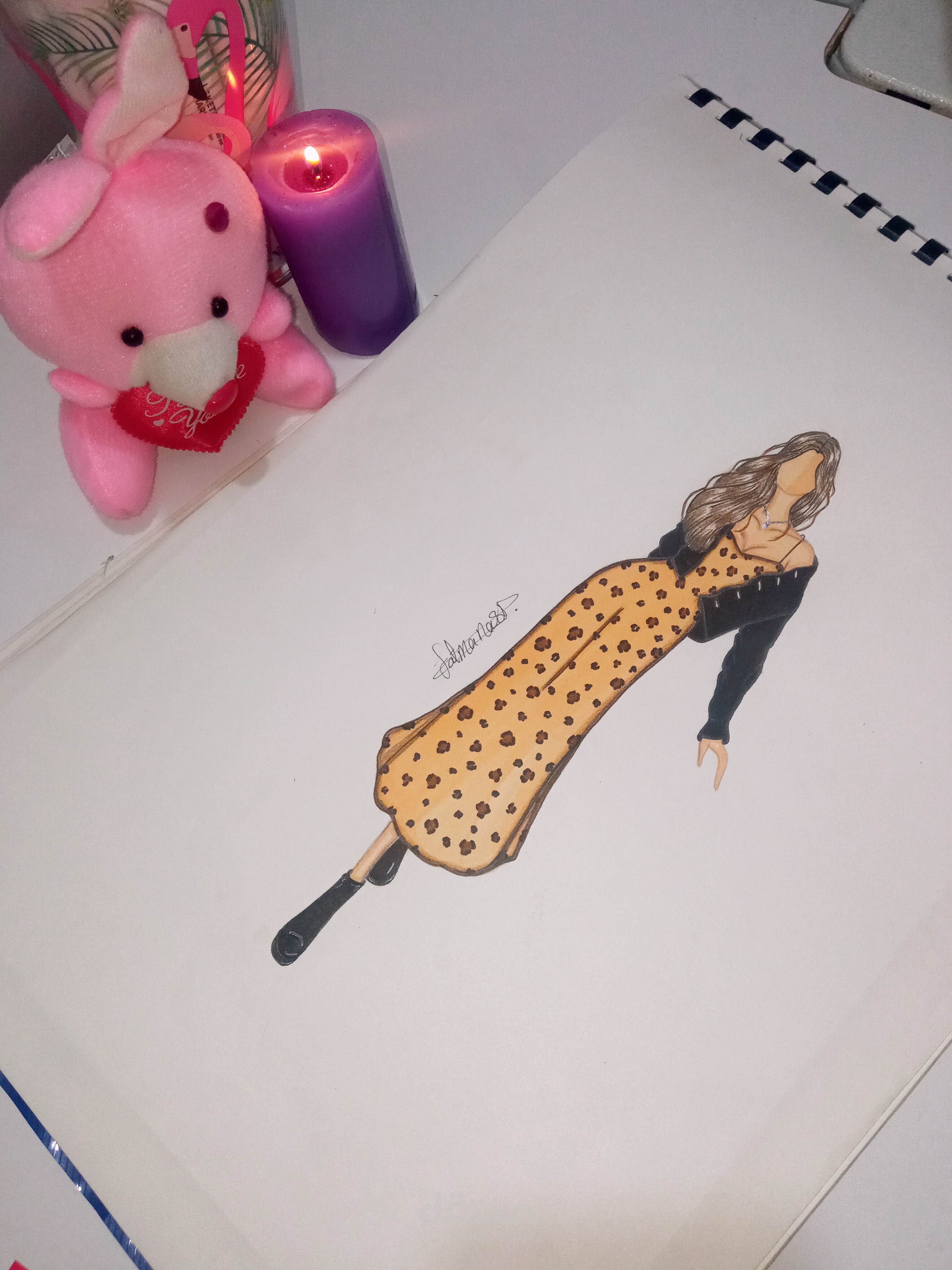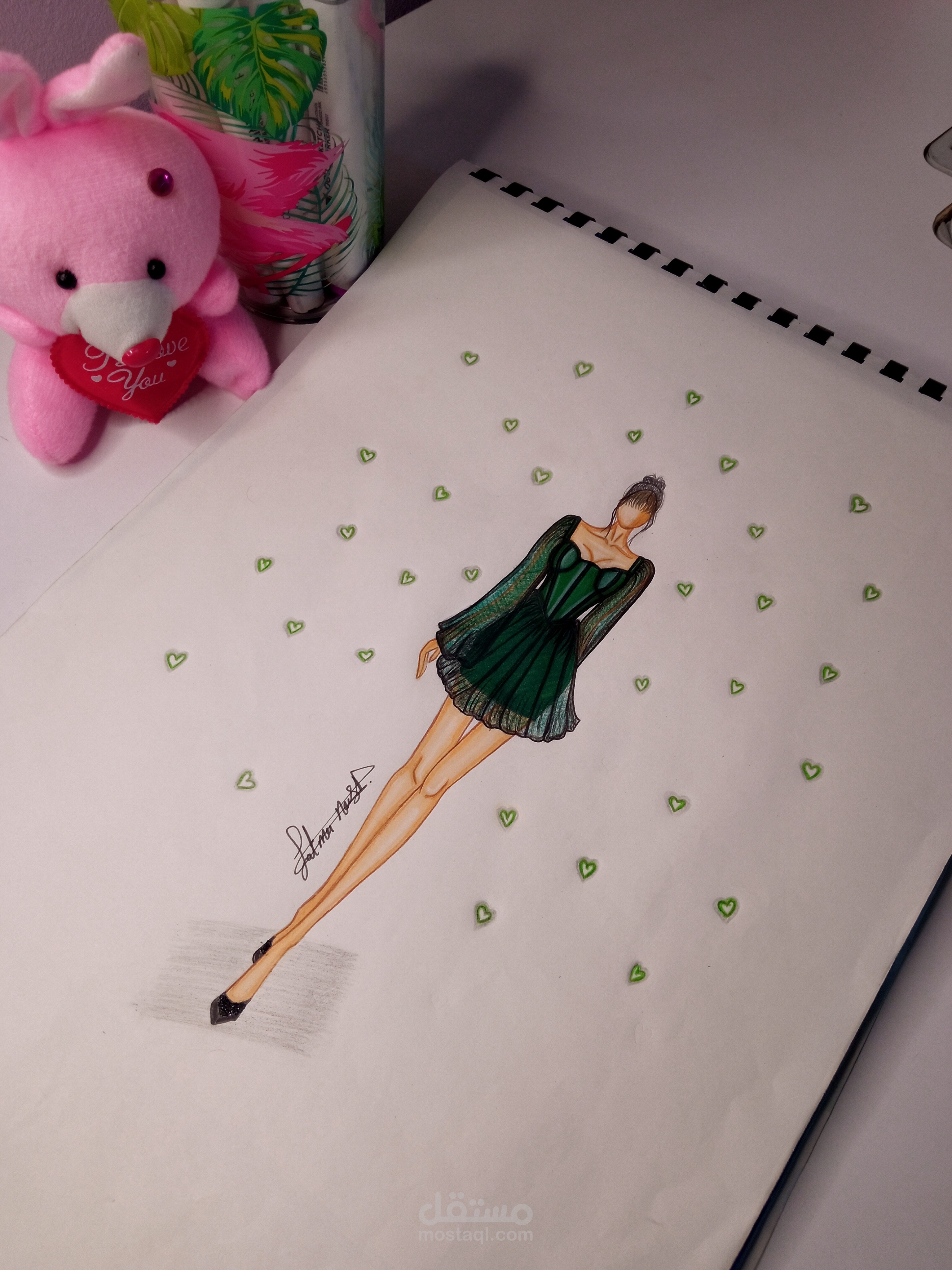 - تصميم الازياء مع إظهار الخامات والطباعات والتفاصيل