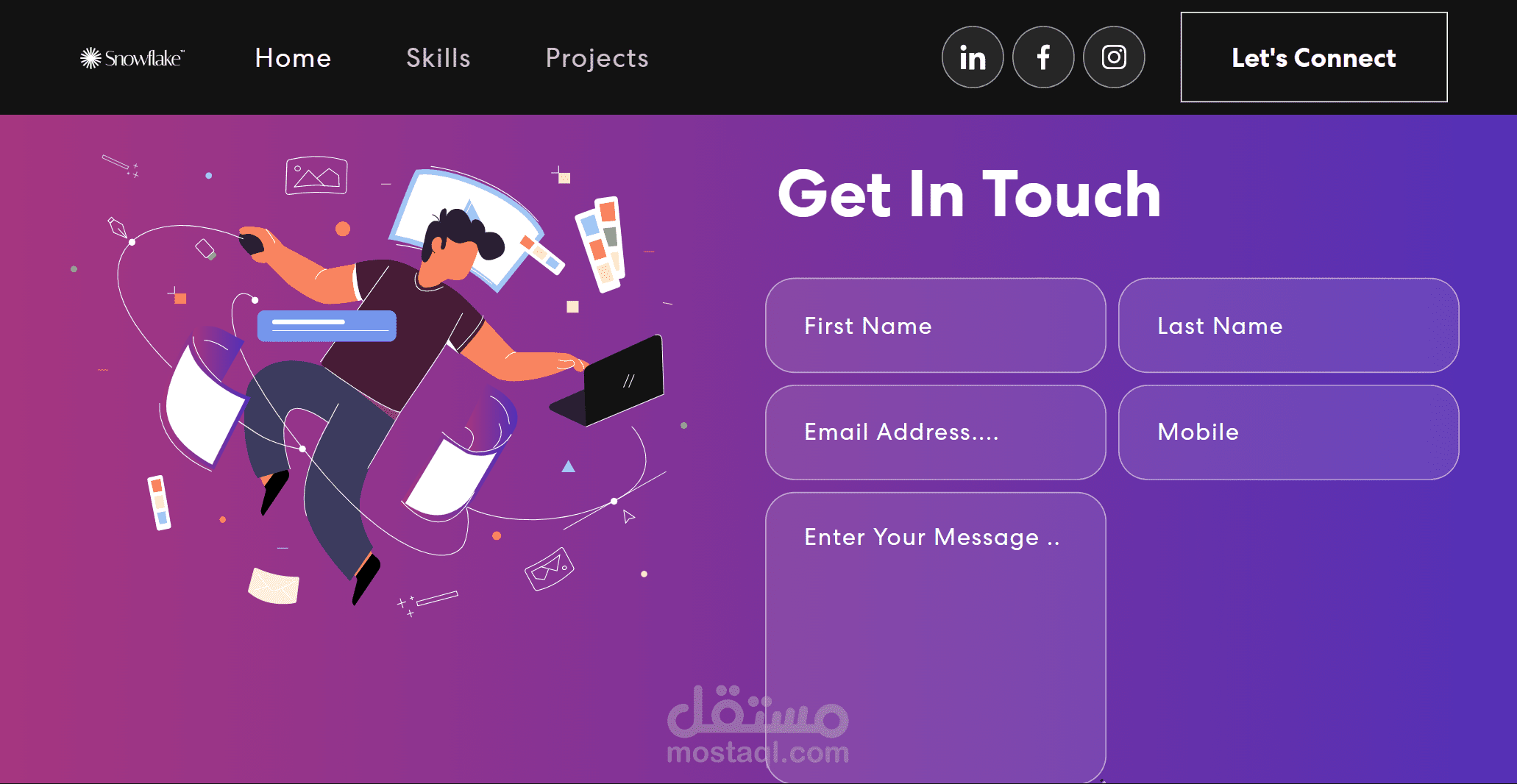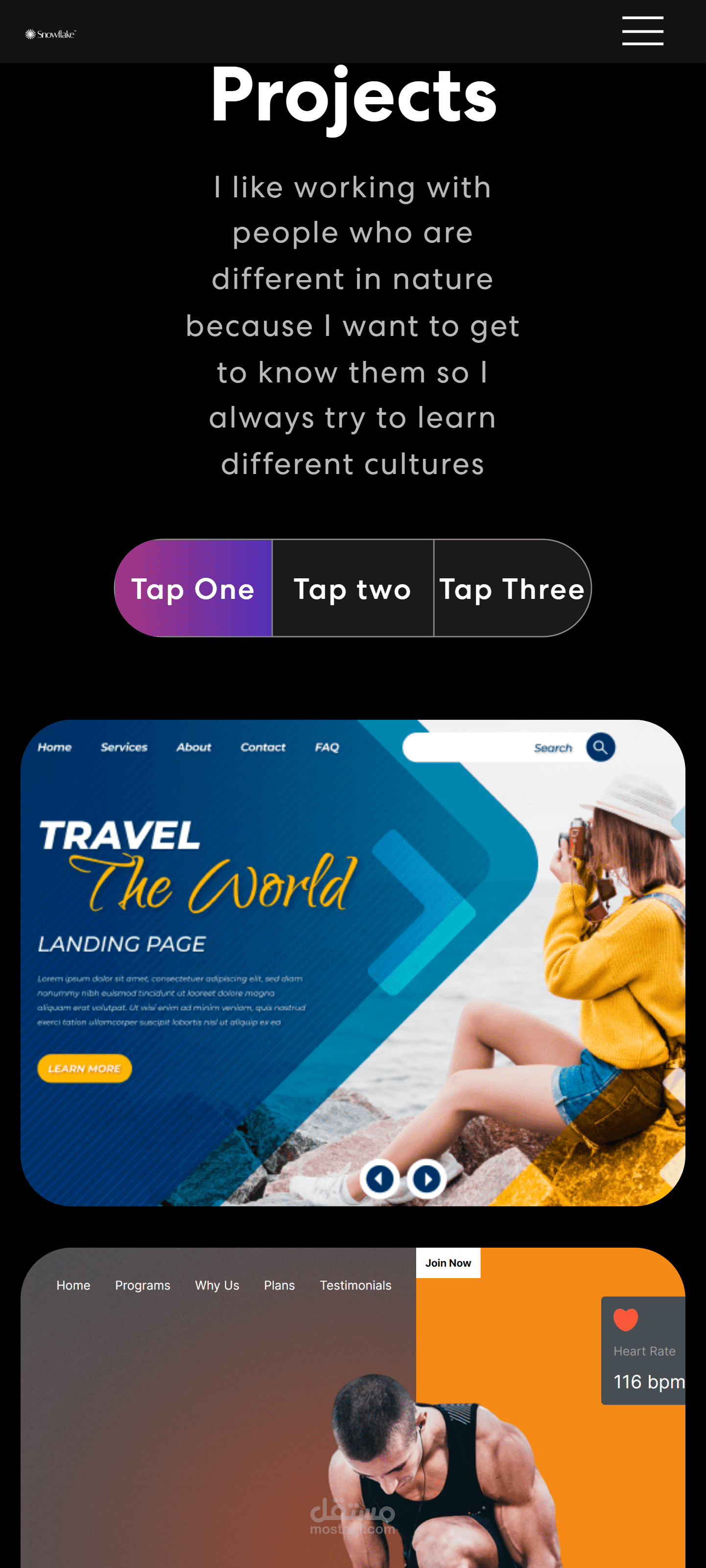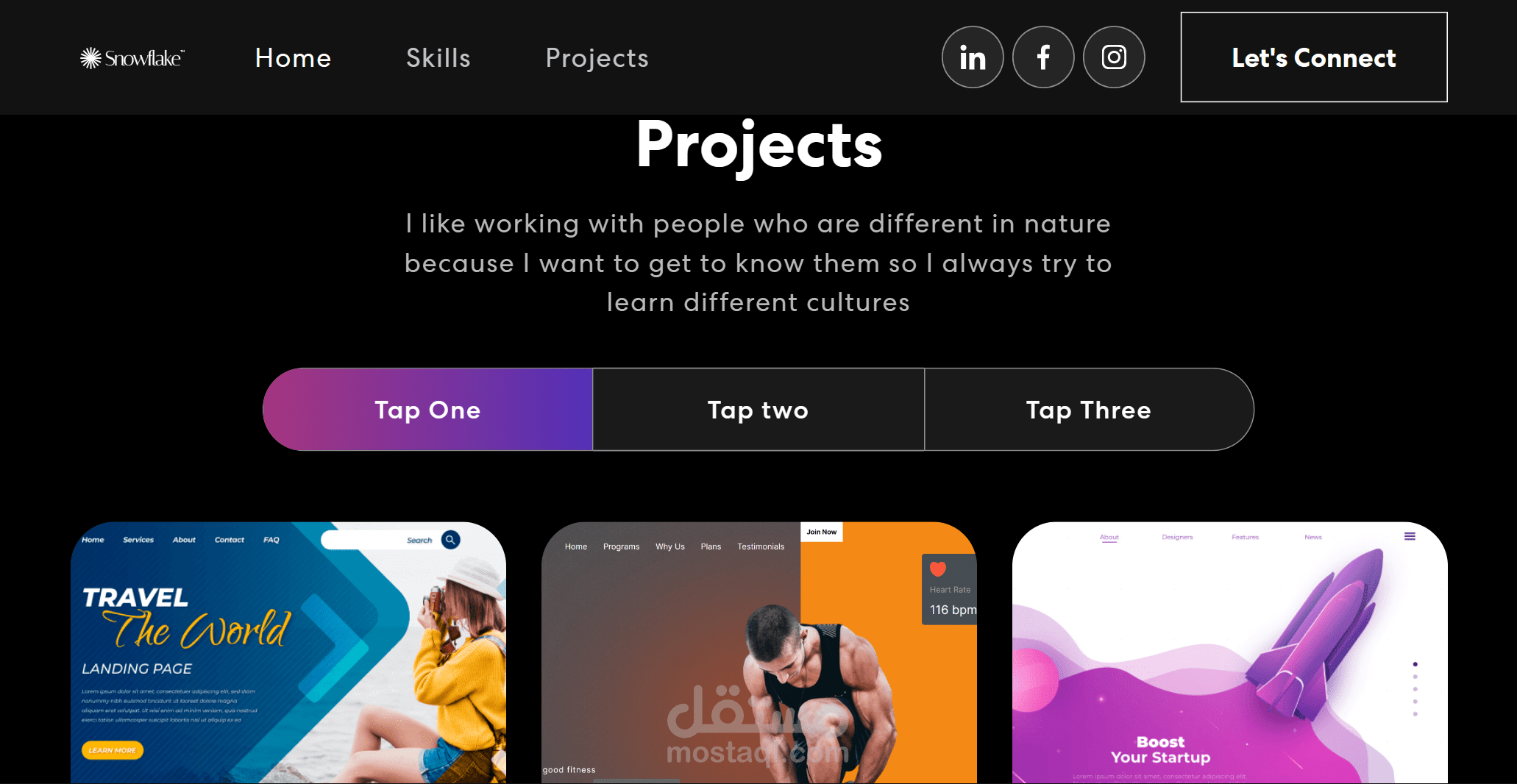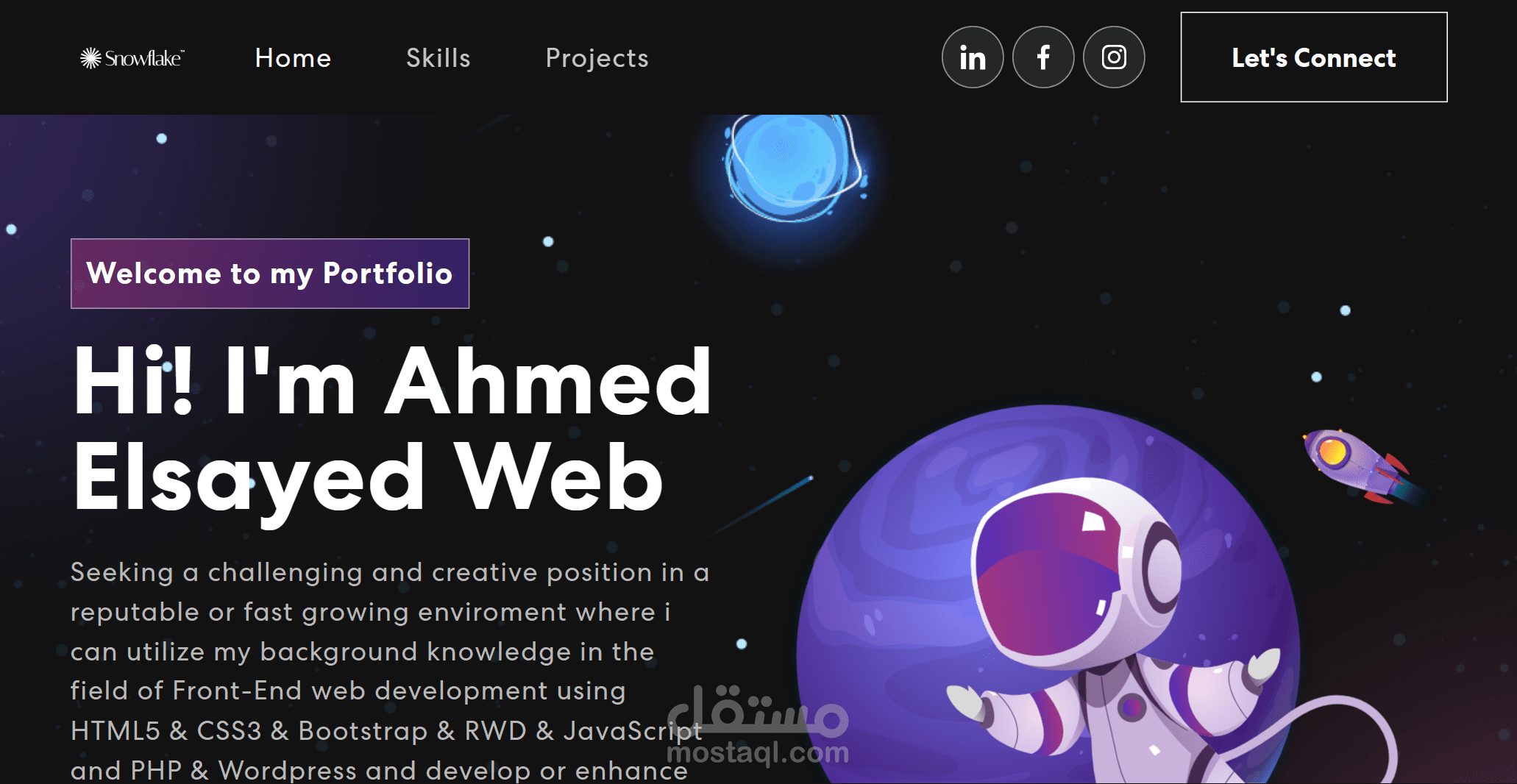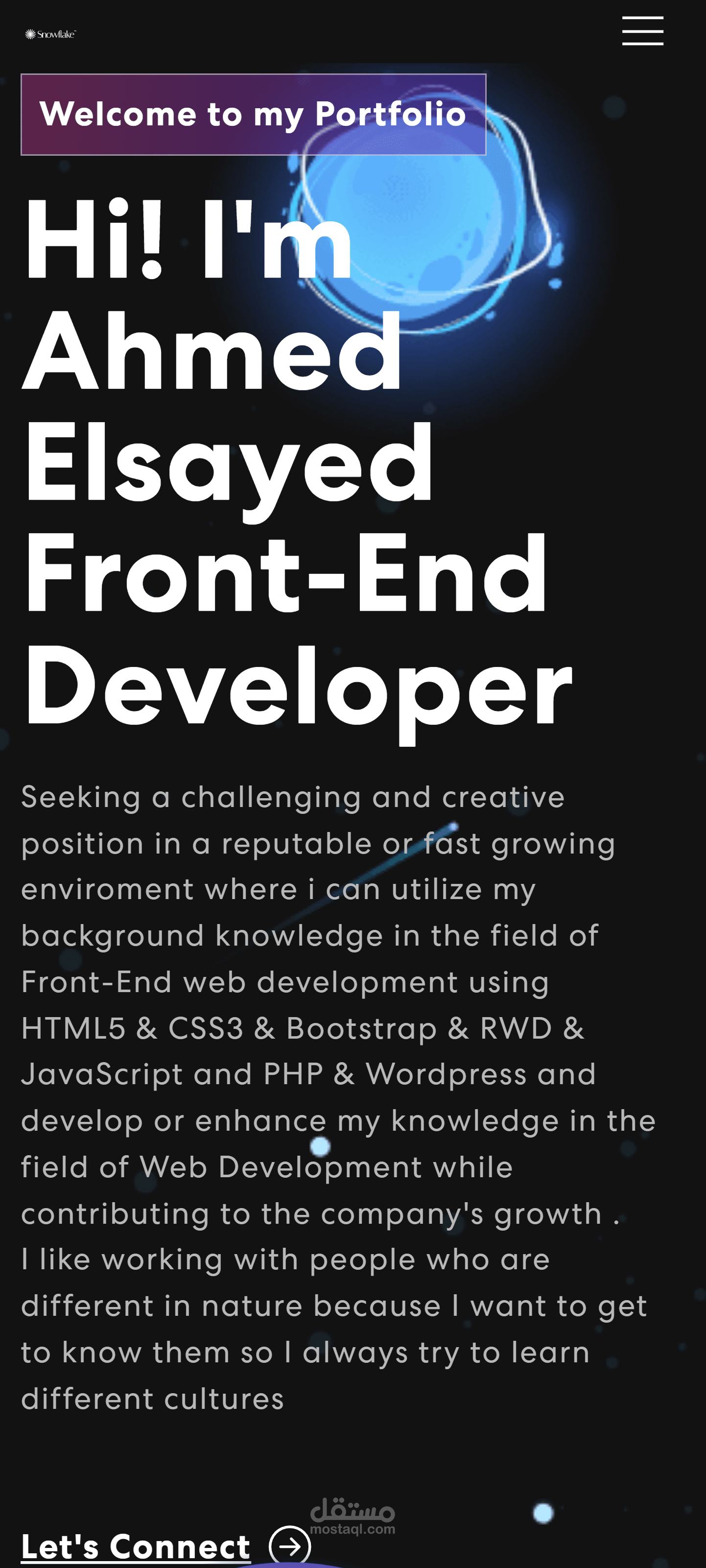 بورتفوليو تم انشاءة بال ReactJs وبعض مكاتب الديزين والانميشن