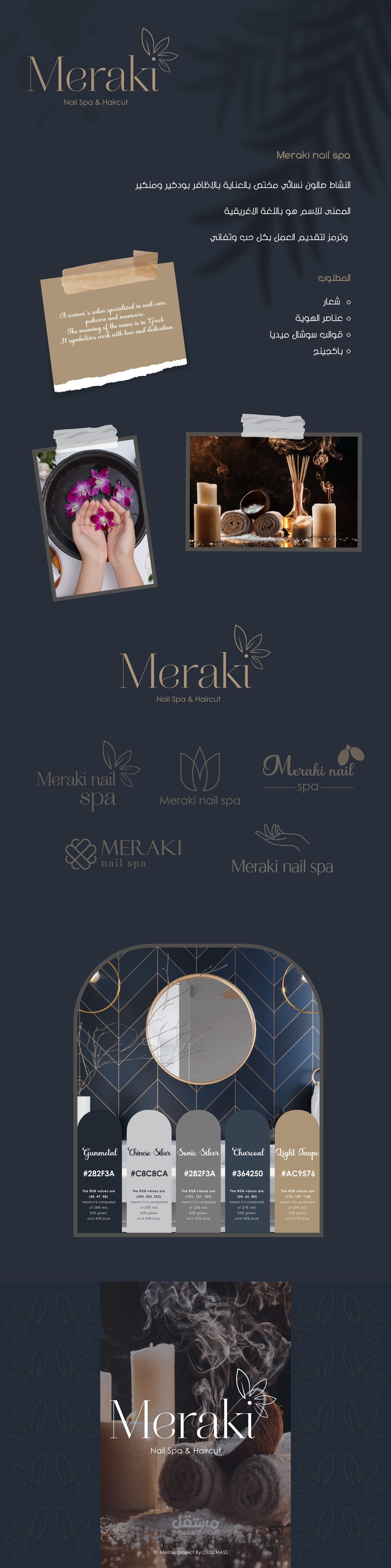 عملي في تصميم هوية بصرية لصالون نسائي مختص بالعناية بالاظافر بودكير ومنكير .