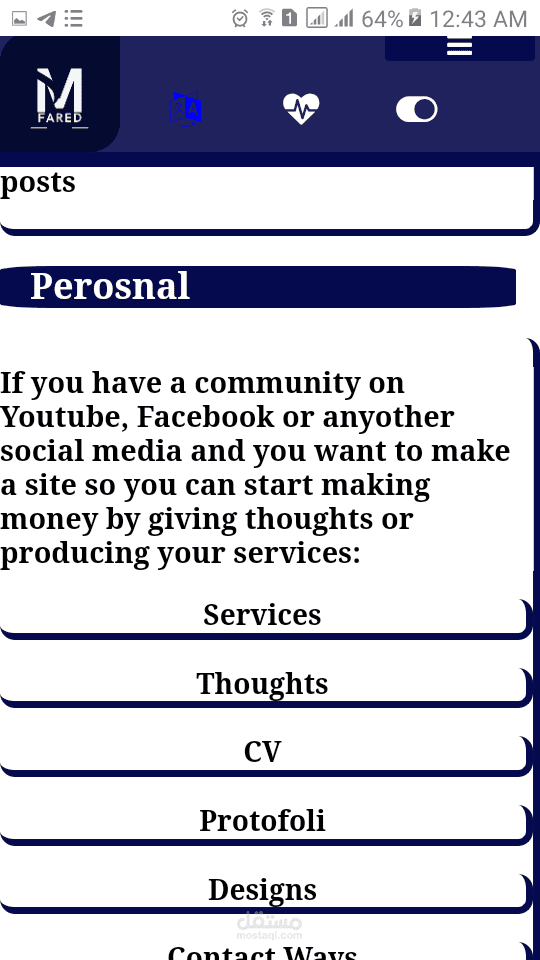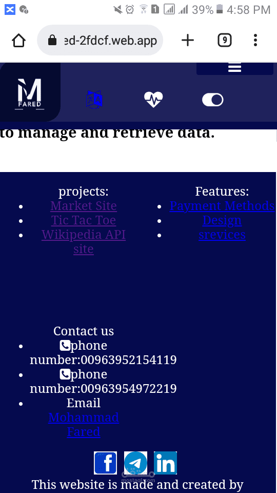 هذا الموقع تسويقي للخدمات والمشاريع والتصاميم التي قمت بها مع العلم ان هذه المشاريع هي ليست قوالب وانما مشاريع متفاعلة يمكنك تجربتها .