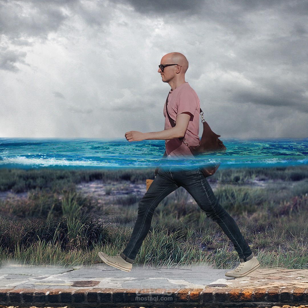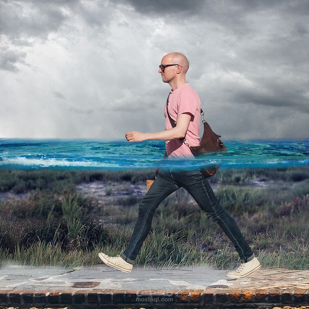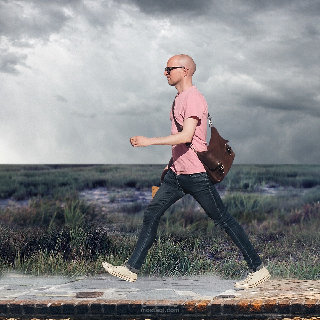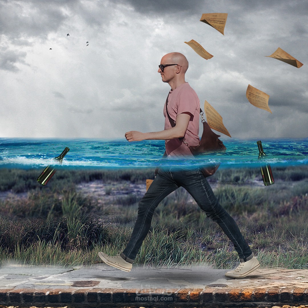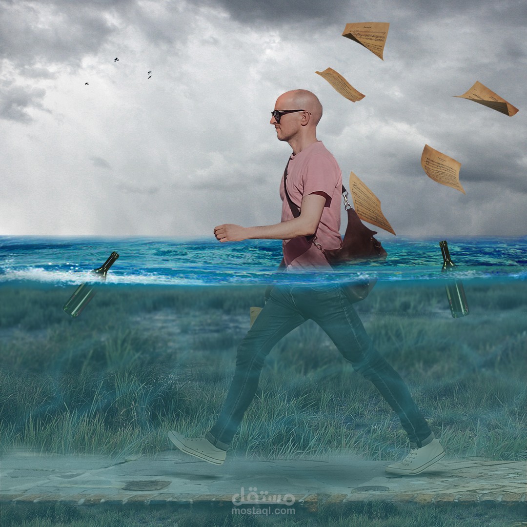 عمل تصميم دمج تعبيري بعنوان السير في الحياه وتحويلة ل رسم كرتوني ايضاً