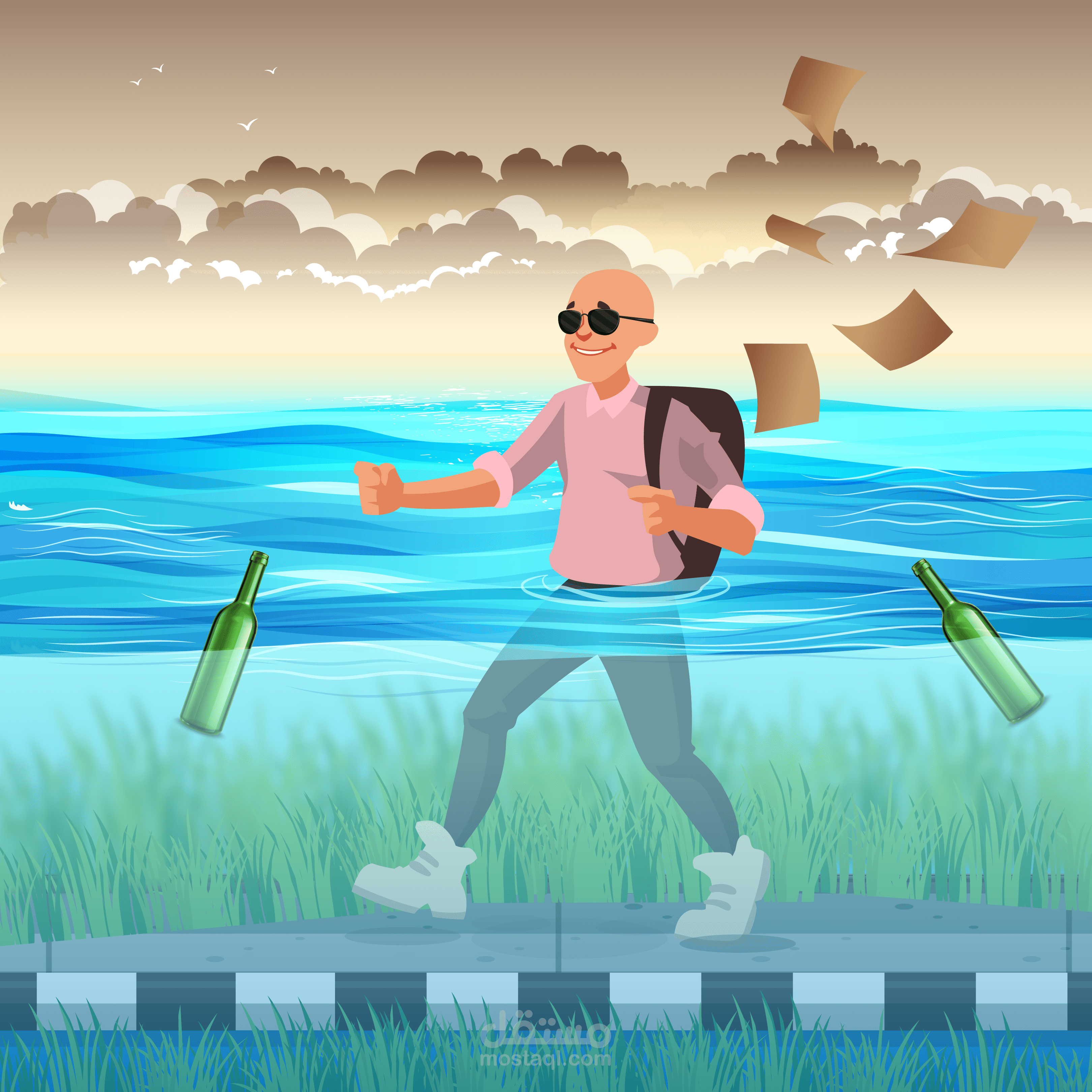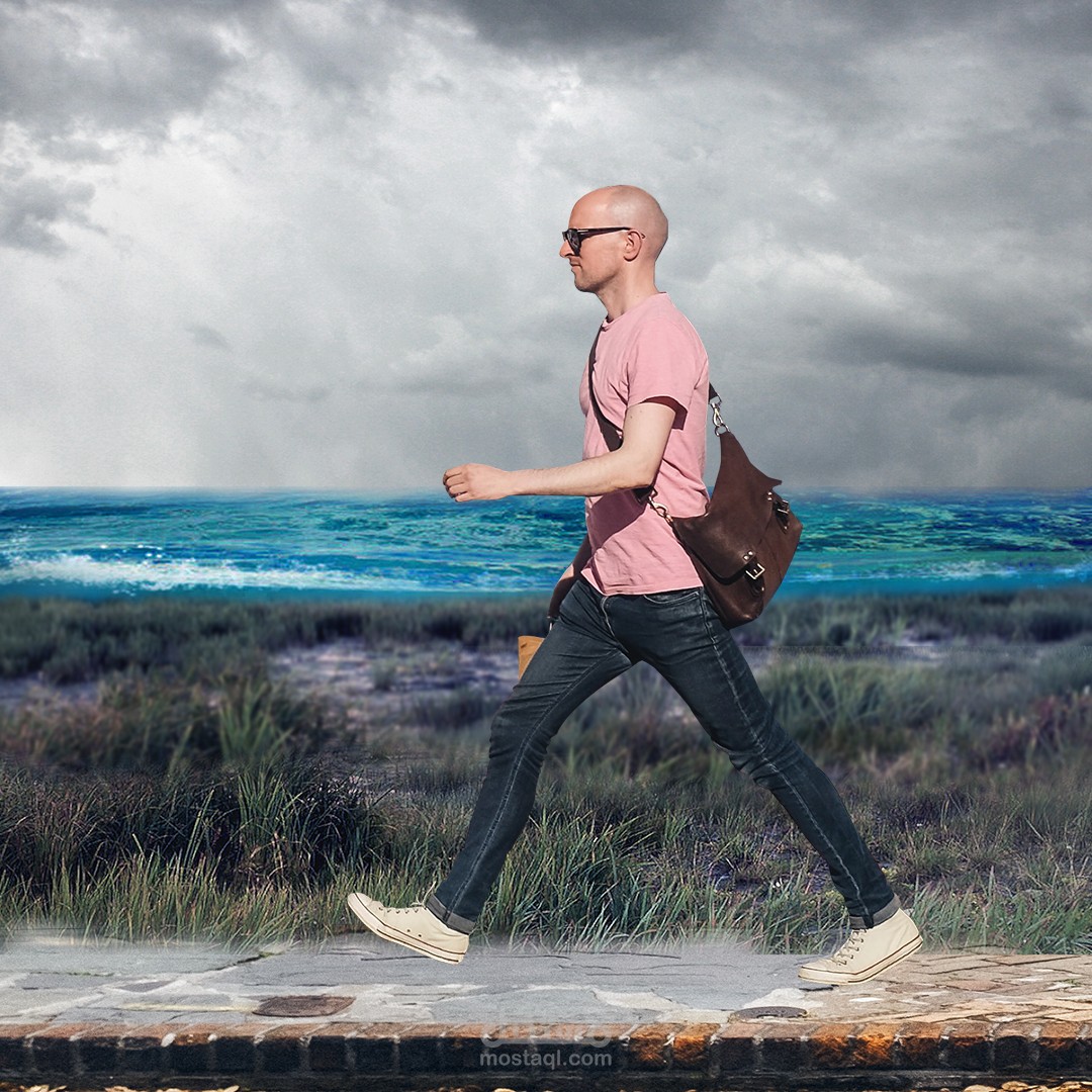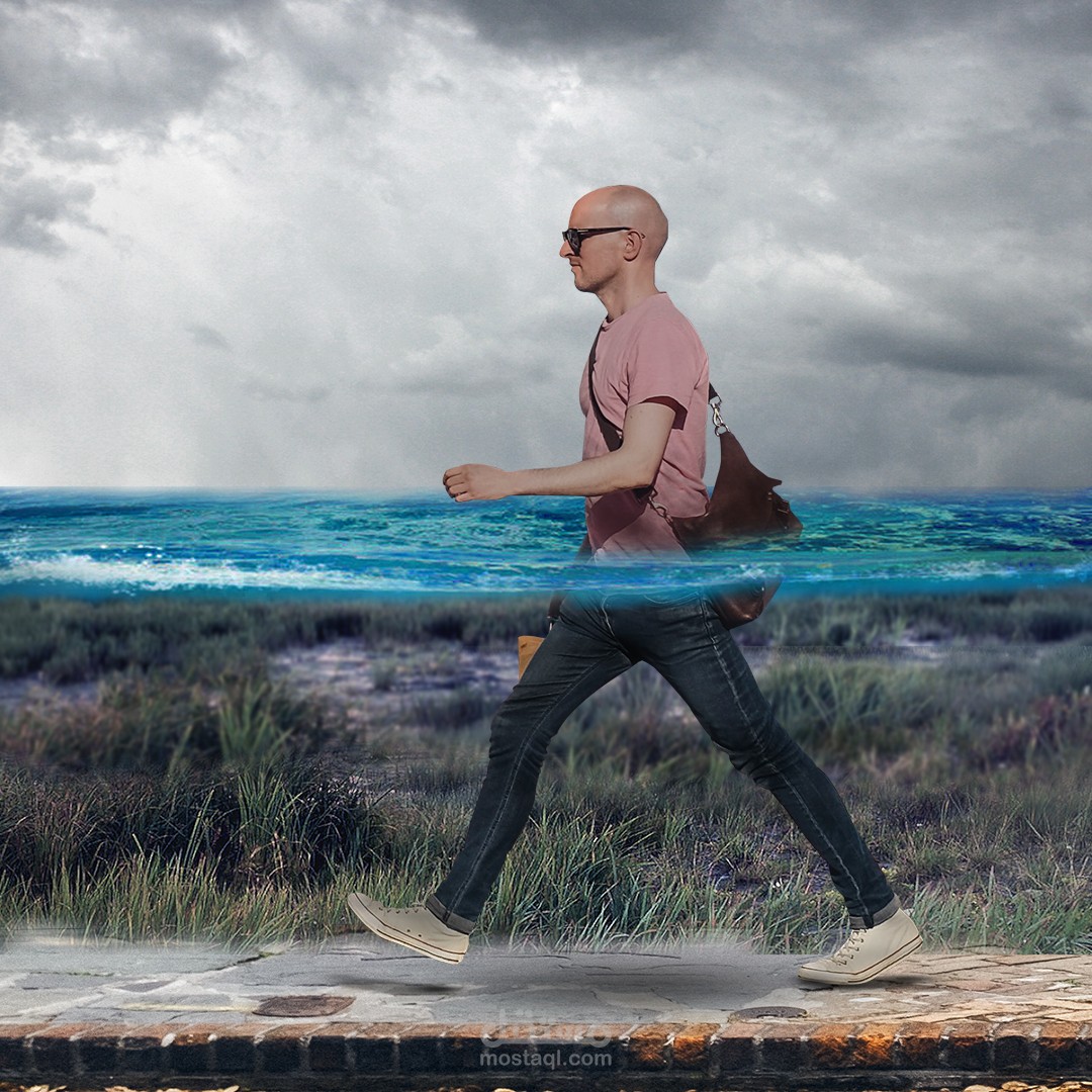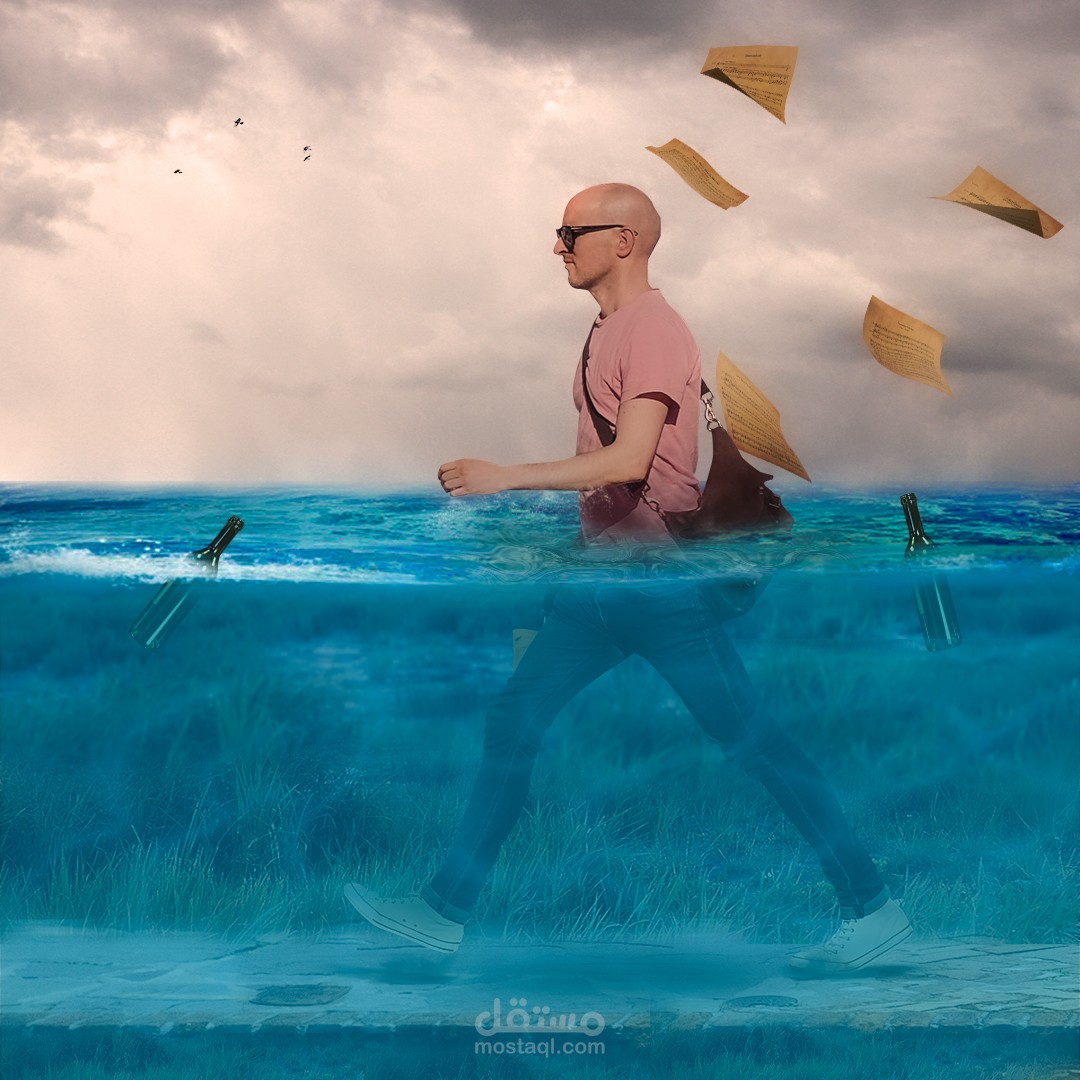 عمل تصميم دمج تعبيري بعنوان السير في الحياه وتحويلة ل رسم كرتوني ايضاً