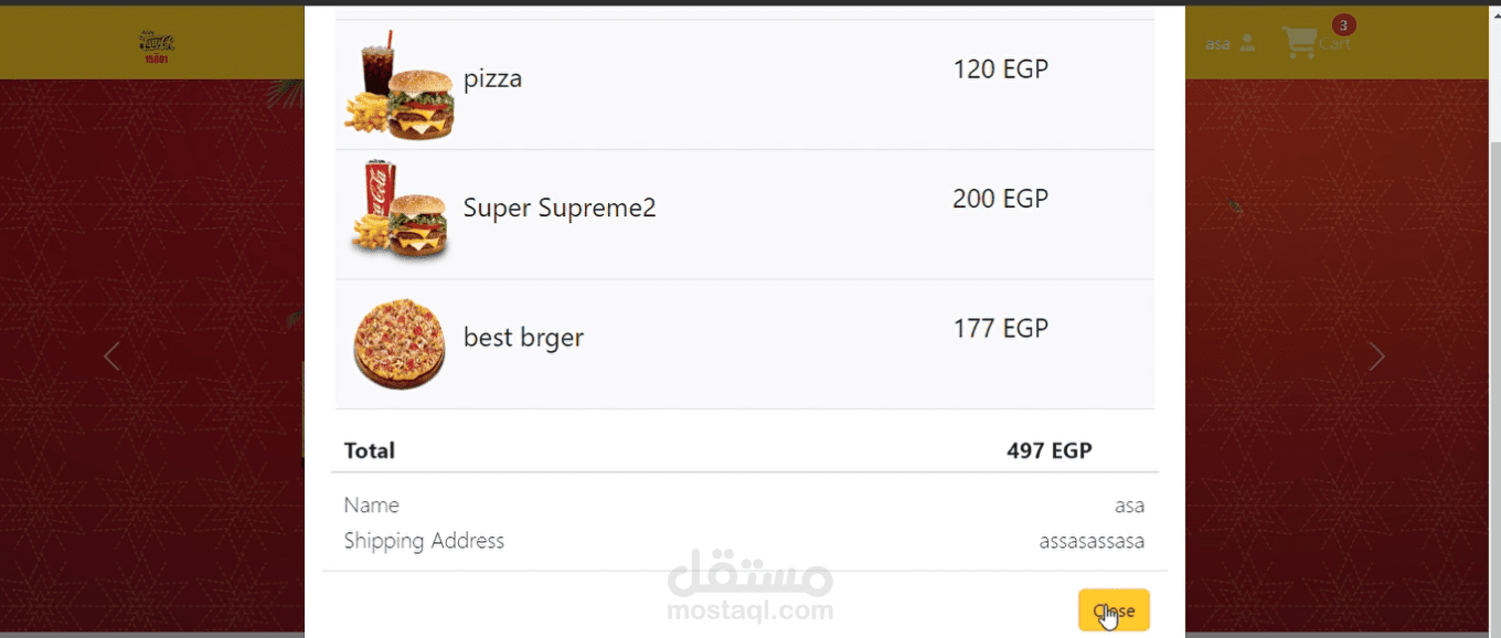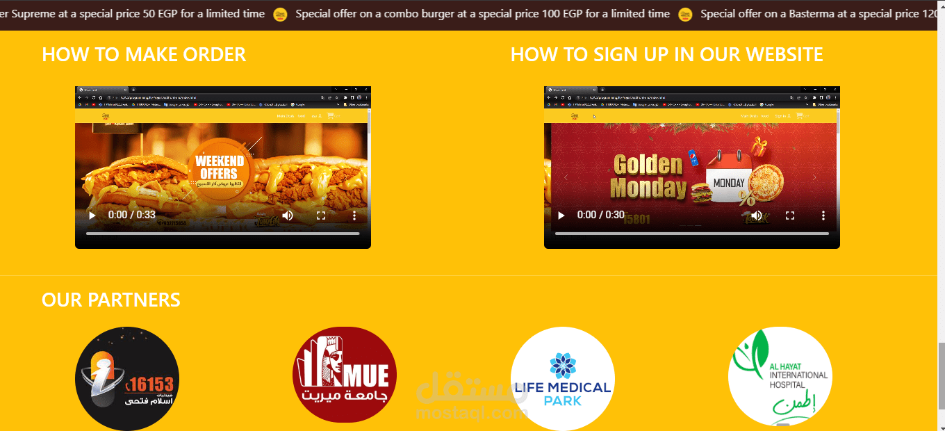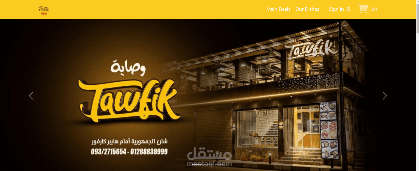 موقع لمطعم يمكن اتمام عملية شراء كاملة وطلب اوردر من قبل العميل من خلال الموقع