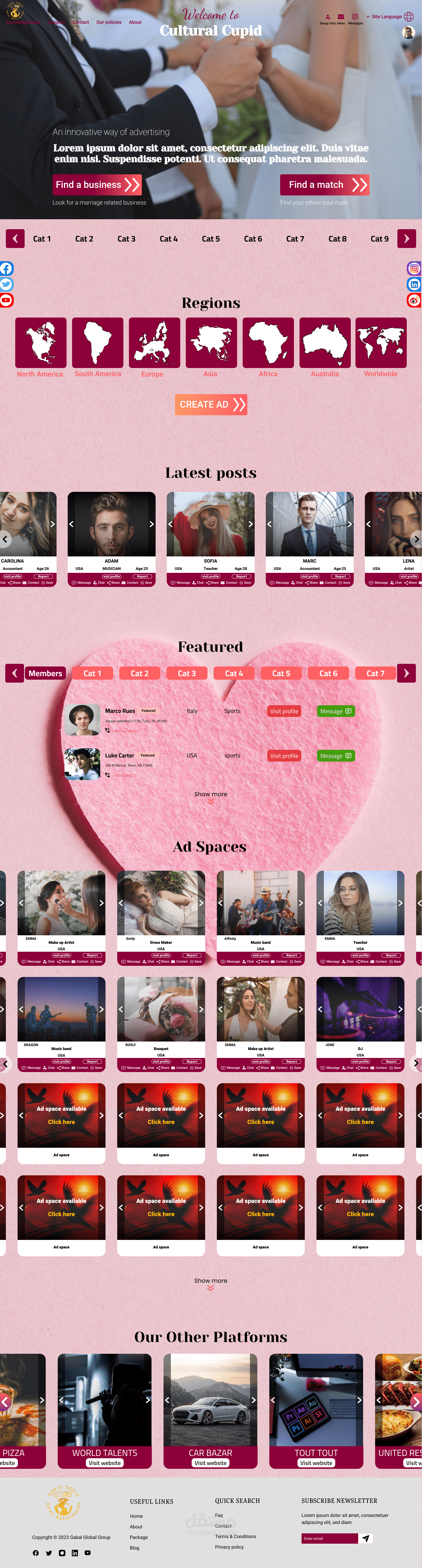 design of landing page of Ethnic match on figma