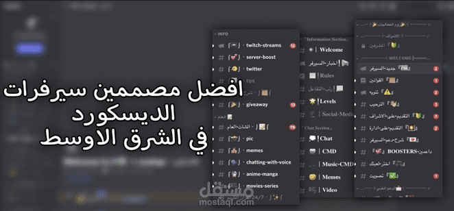ساقوم بتنسيق وتصميم سيرفر ديسكورد لك ب اي نوع تريد العاب سوالف الخ مع تهيئه البوتات الاساسيه للسيرفرات والرولات وظبط اعداداتها ونظام حماية للسيرفر