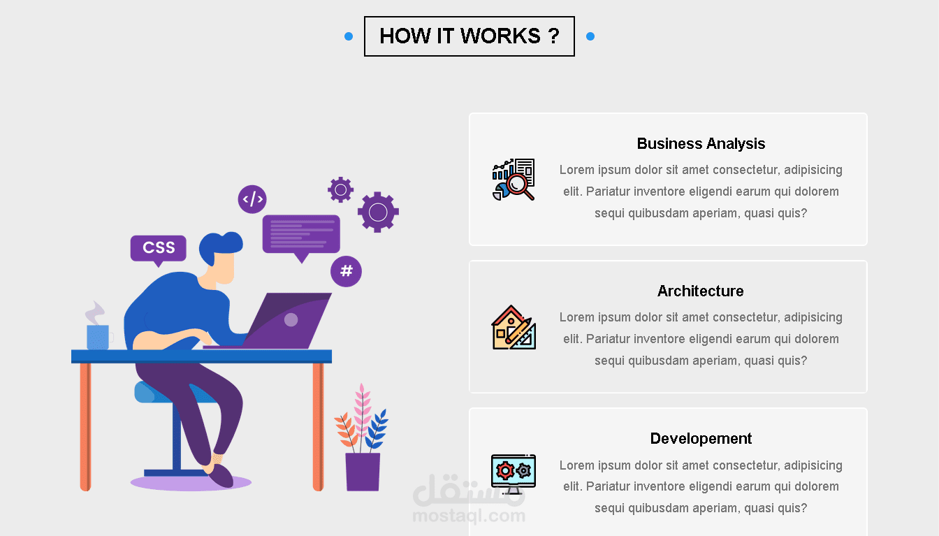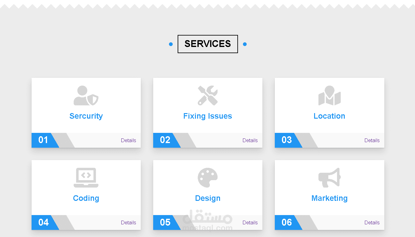 يسلط قسم الخدمات الضوء على العروض الرئيسية لعملك ، وبمساعدة الرموز ، يسهل على الزائرين فهم ما تقدمه في لمحة.