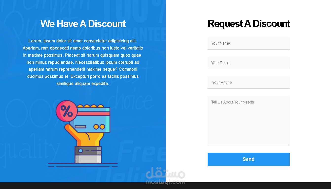 يتميز قسم الاتصال بنموذج اتصال وعنوان عملك ورقم هاتفك . من المهم أن تسهل على العملاء المحتملين الاتصال بك ، وهذا القسم يفعل ذلك بالضبط.