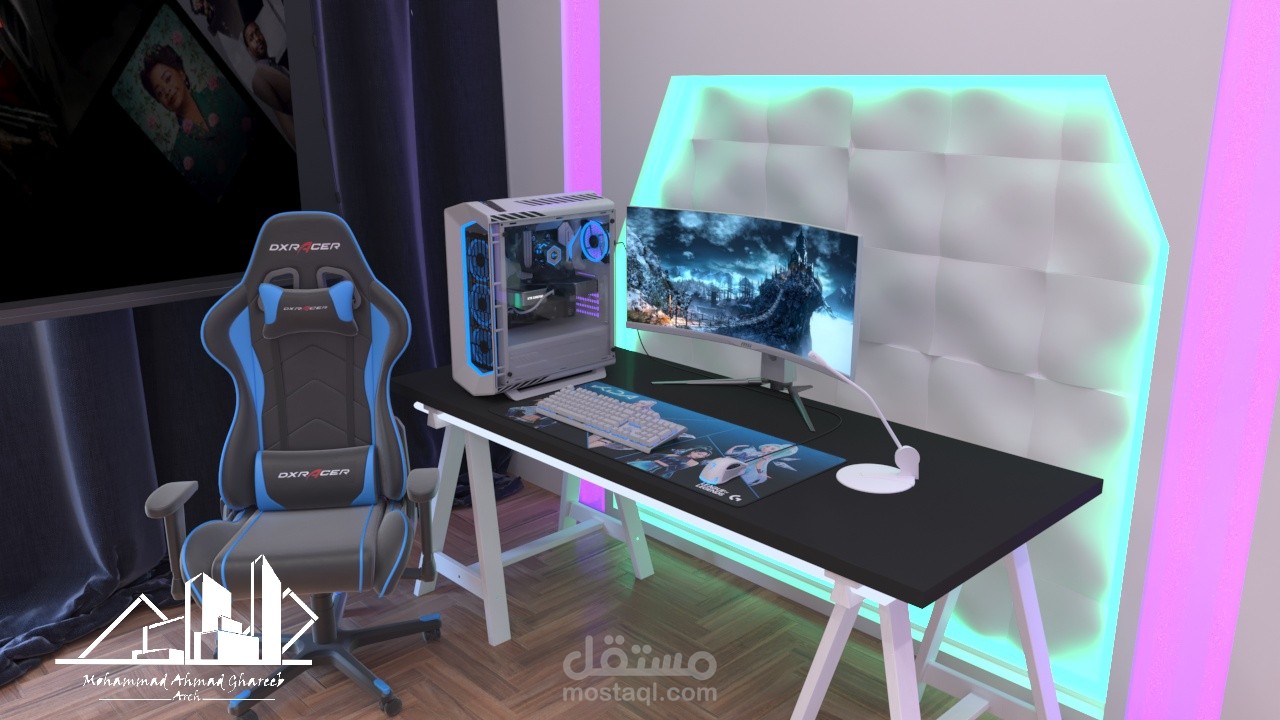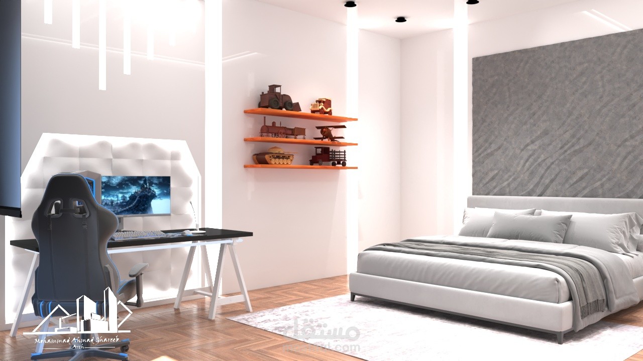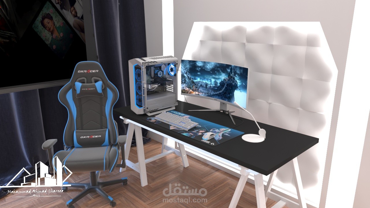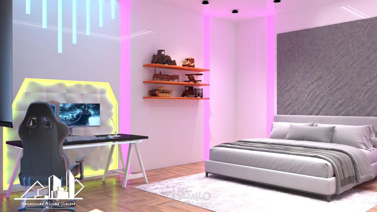 غرفة نوم لشاب ومكان للعب ألعاب الفيديو