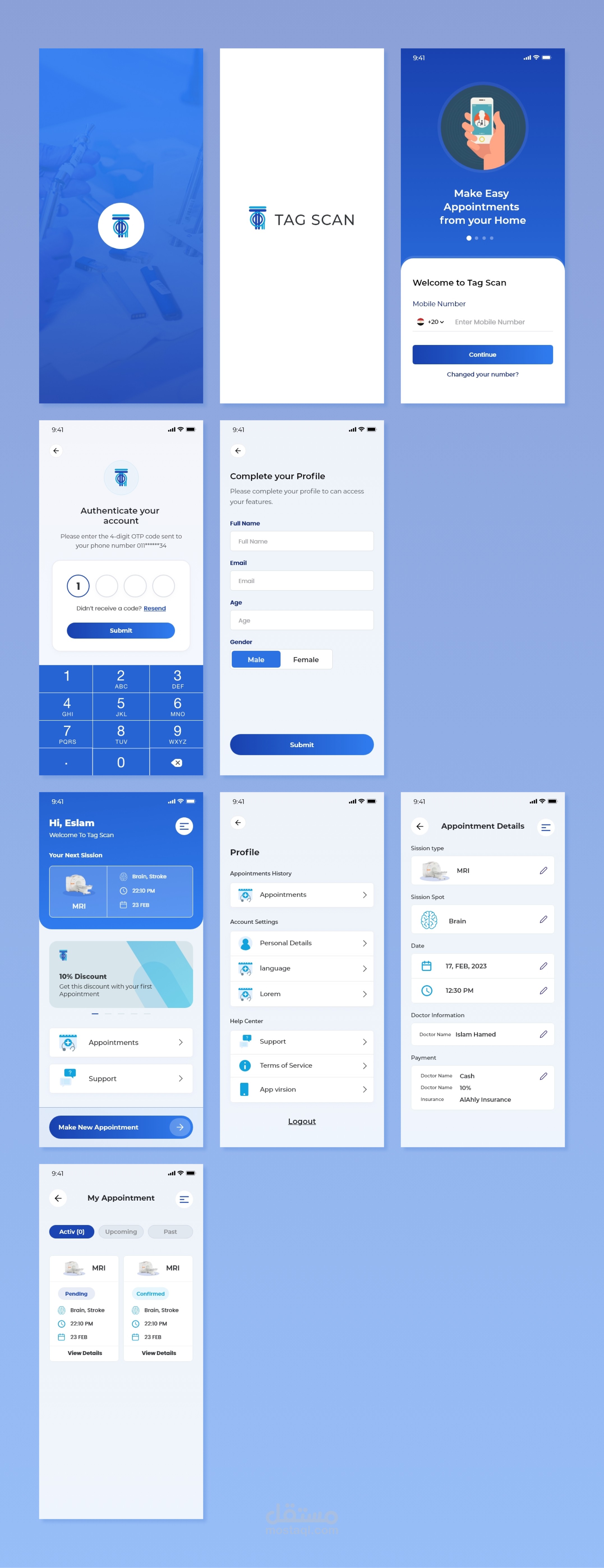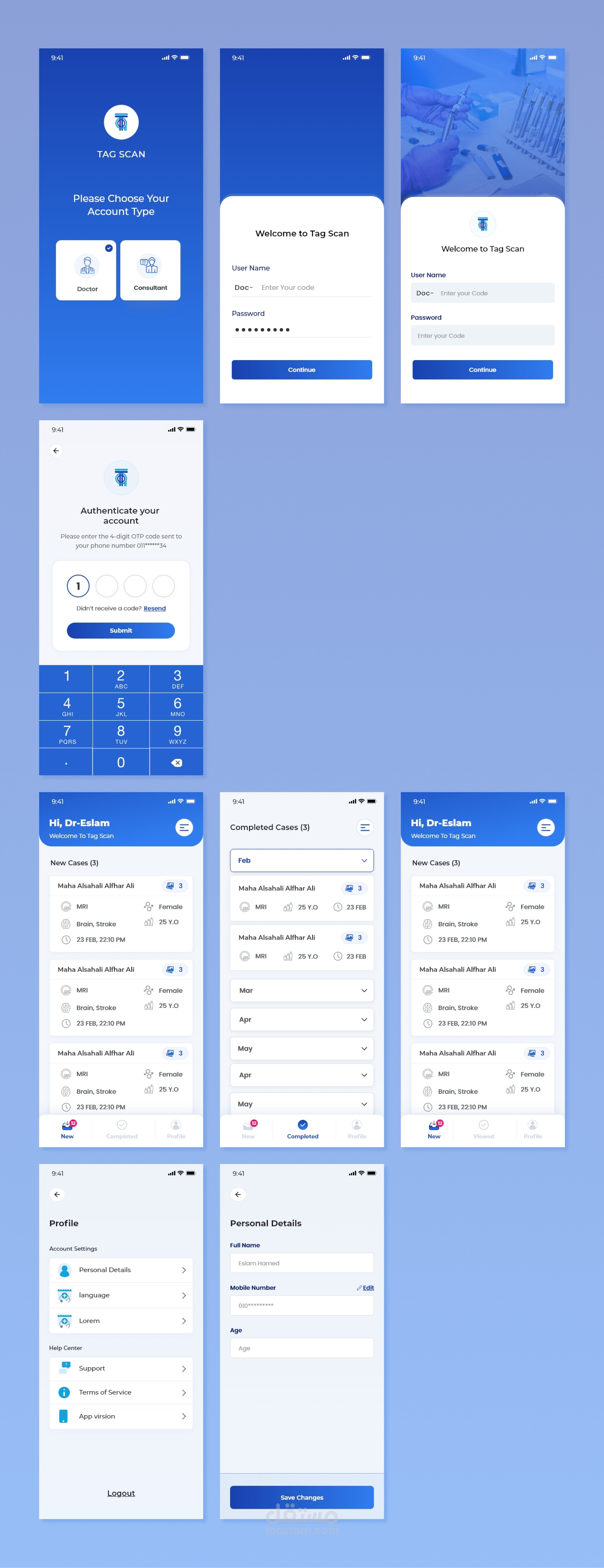 تصميم تطبيق لحجز جلسة فحص بمعمل تحاليل وتطبيق للدكتور لمتابعة الحالات.