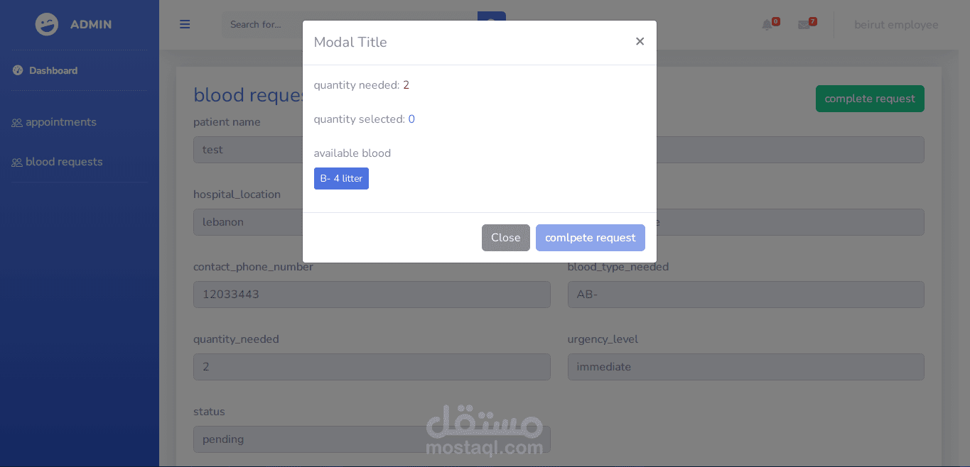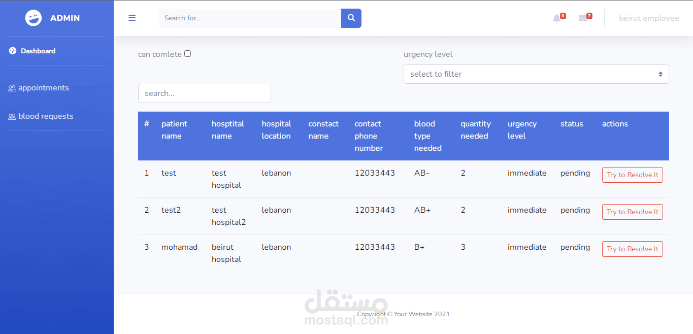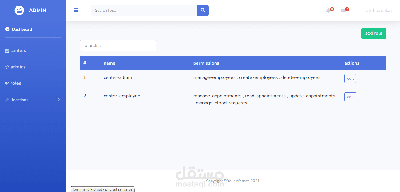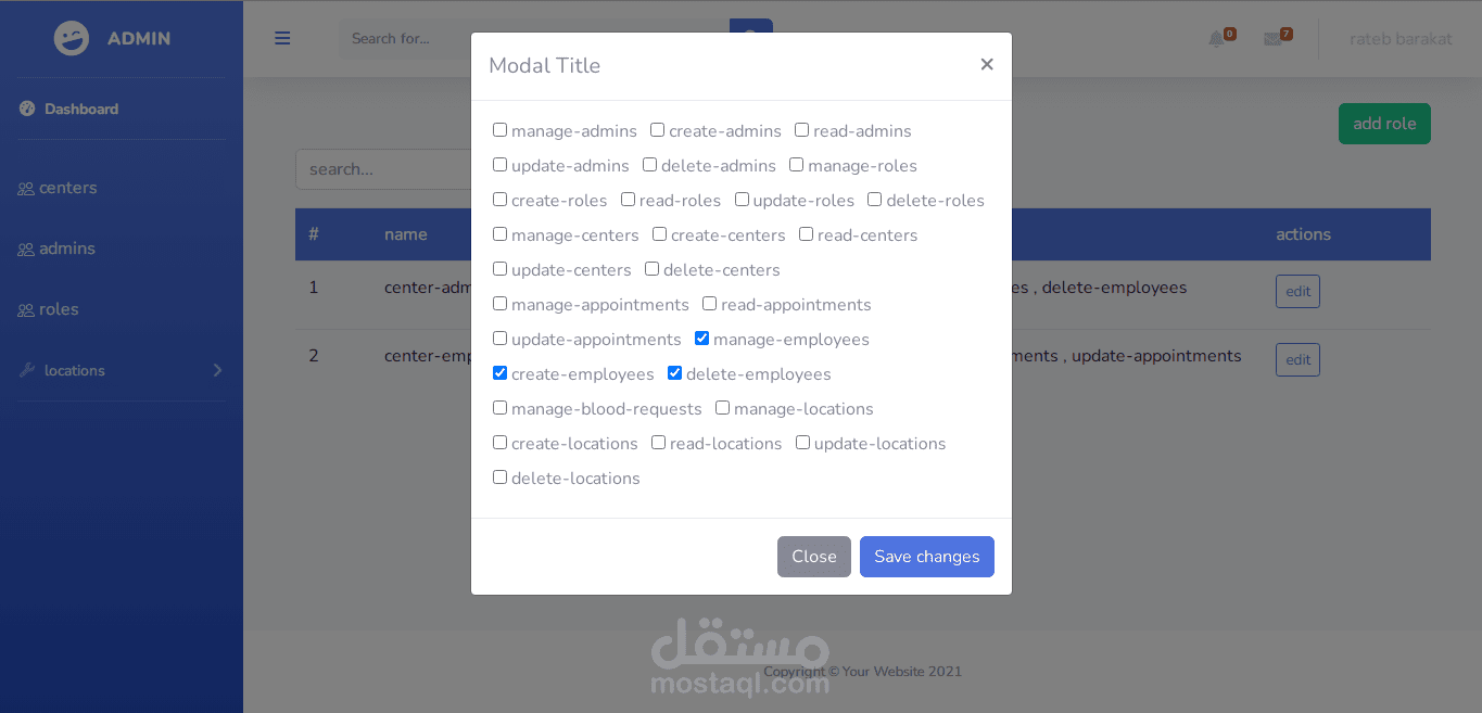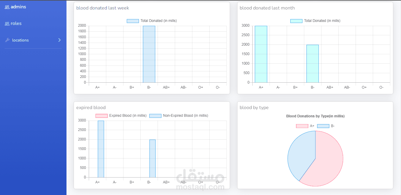 -The admin area is divided into three levels, each with their own unique capabilities. The super admin has complete oversight of the entire system, allowing them to manage admins, centers, roles, and permissions. The center admin has the ability to manage employees at their center, while the employee is responsible for managing appointments and blood requests at their respective center.
