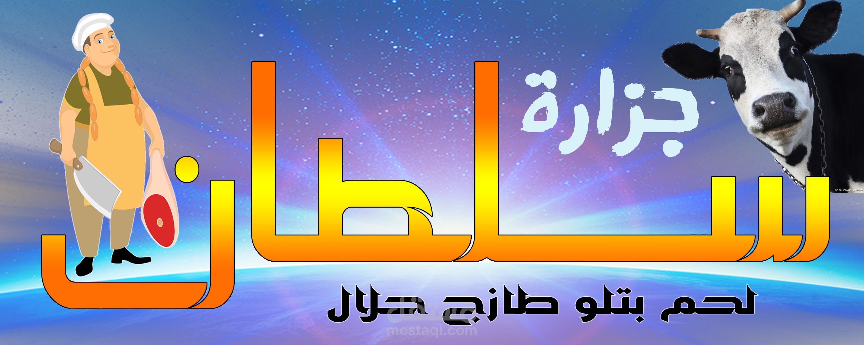 يافطة محل جزارة مقاس 3 متر في 1 متر مضيئة