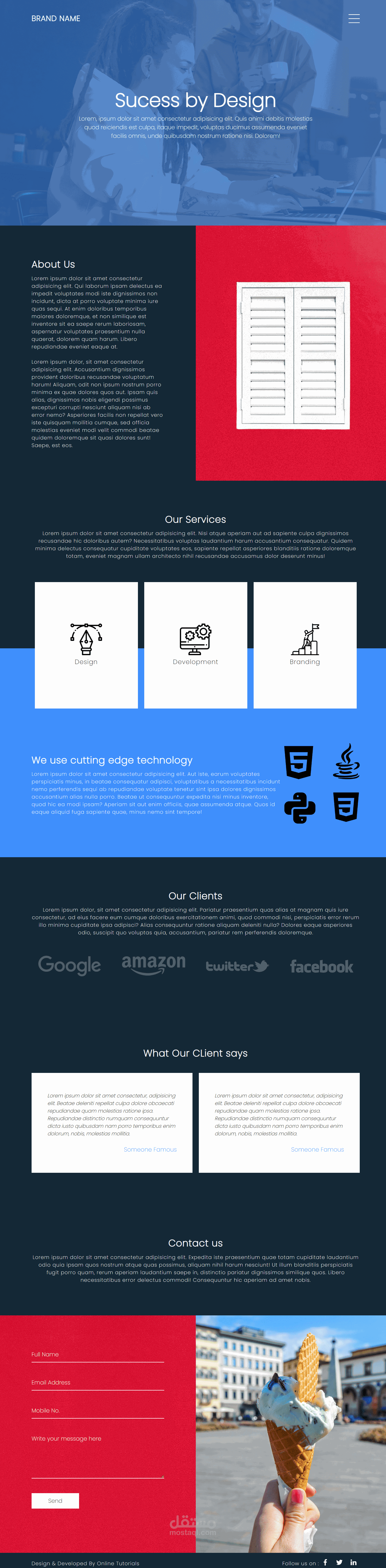 يتم استخدام تقنيات تصميم الويب الحديثة مثل HTML5 وCSS3 وJavaScript لإضفاء