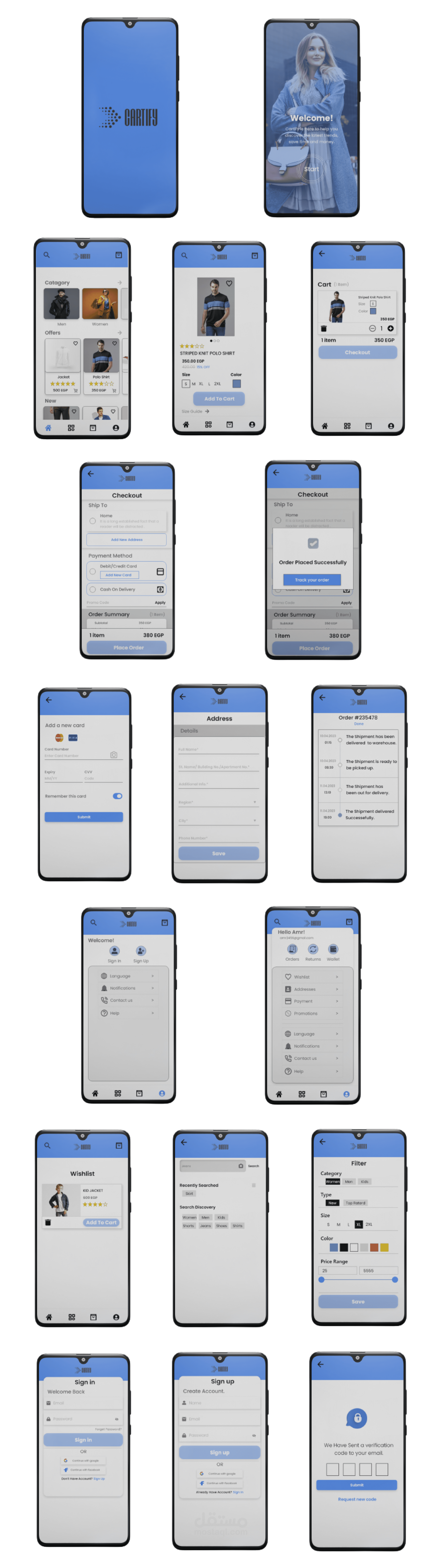 1-قمت بإجراء بحث مستفيض حول تصميم تطبيقات e-commerce وتجارب المستخدم في هذا المجال، واستخدمت هذه المعلومات لإنشاء تصميم مريح وسهل الاستخدام.