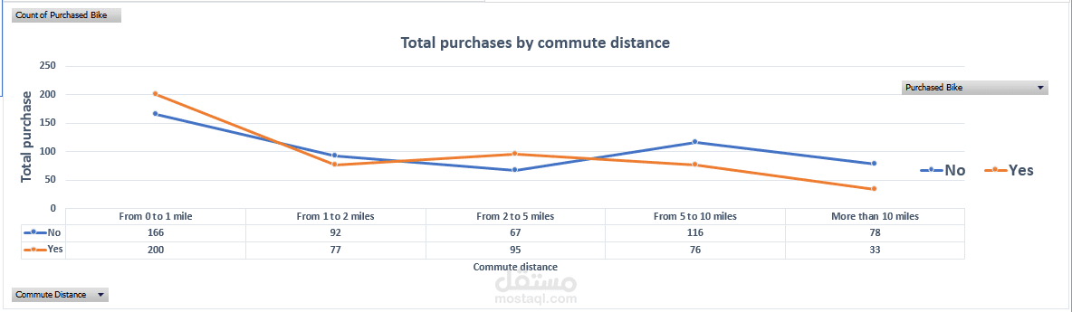 تحليل بيانات و عرض بيانات بدقة و إحترافية بواسطة مايكروسوفت إكسيل لإستخراج حجم مبيعات دراجات مقارنة ب :