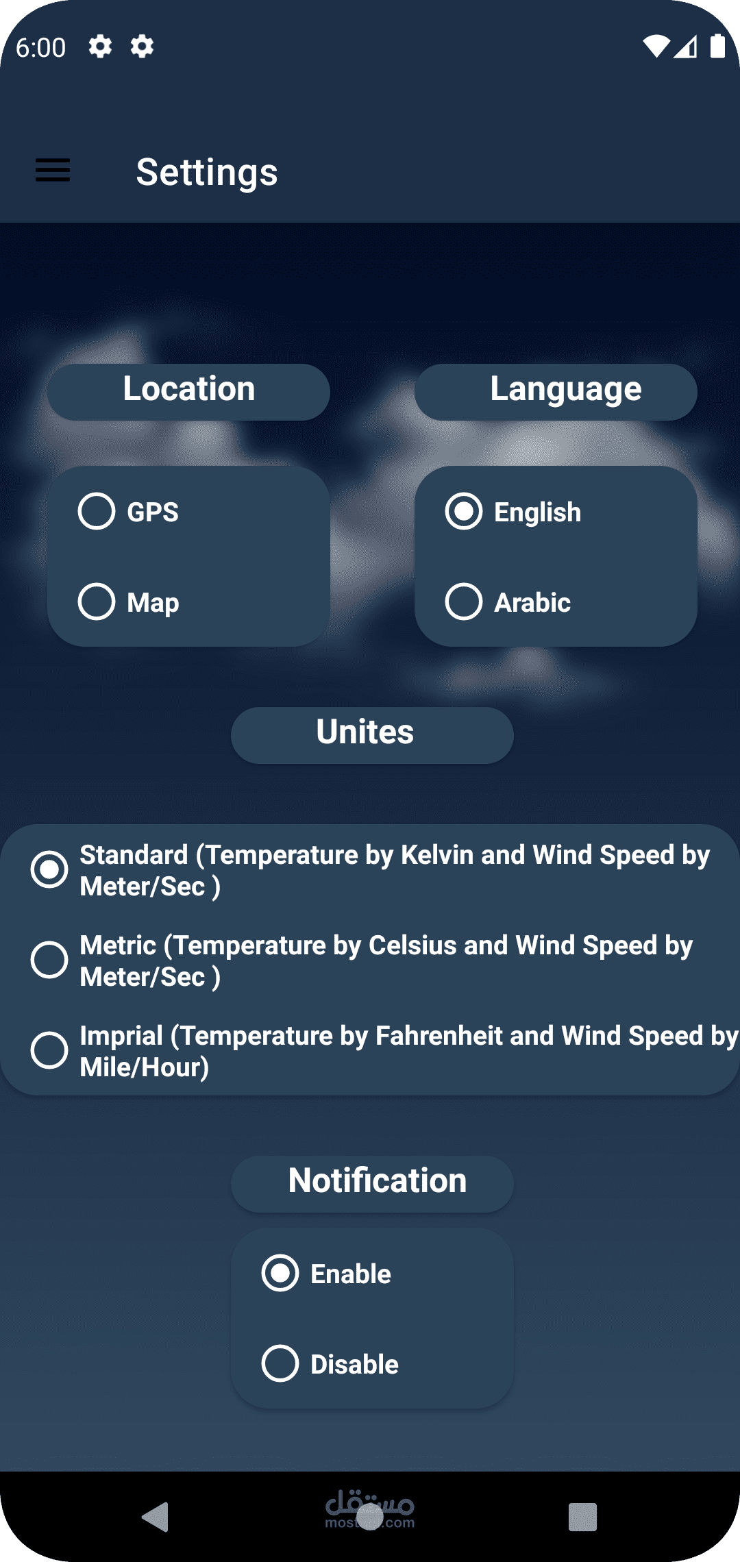 Android Mobile Android Application usnig Kotlin to get the weather conditions, using design architecture MVVM.