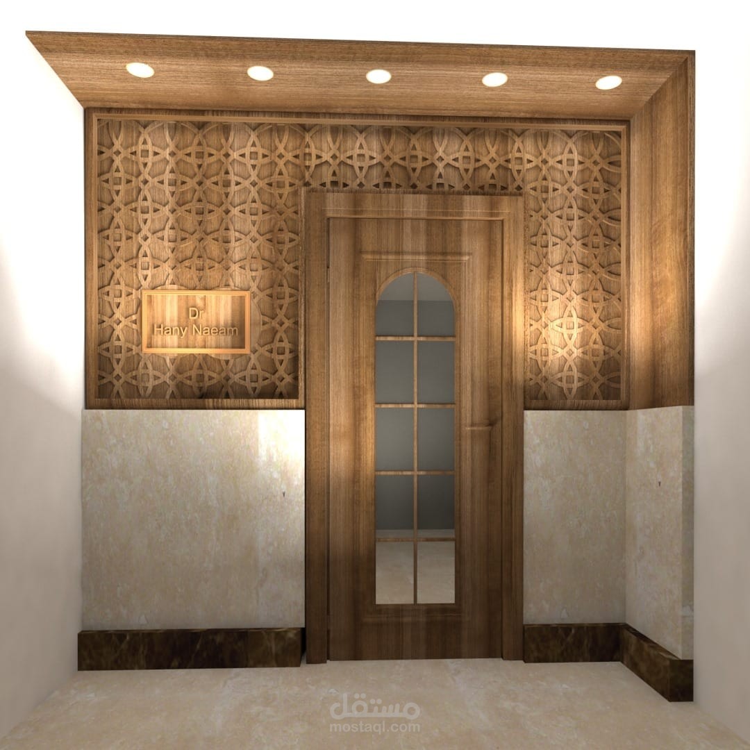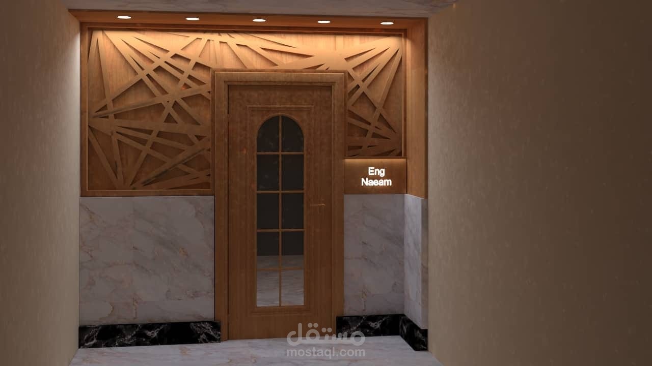 تصميم واجهه خشبية لمدخل مكتب خاص