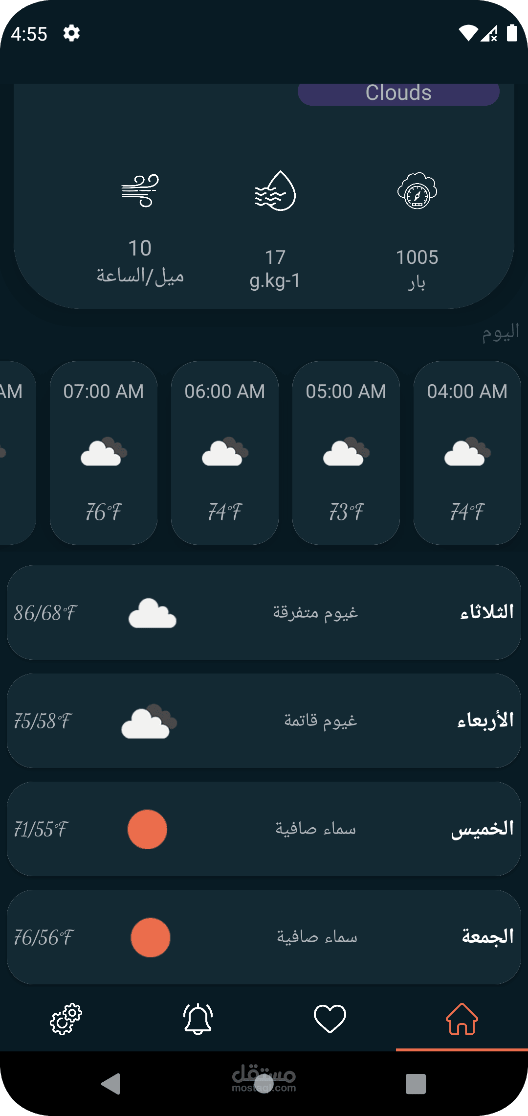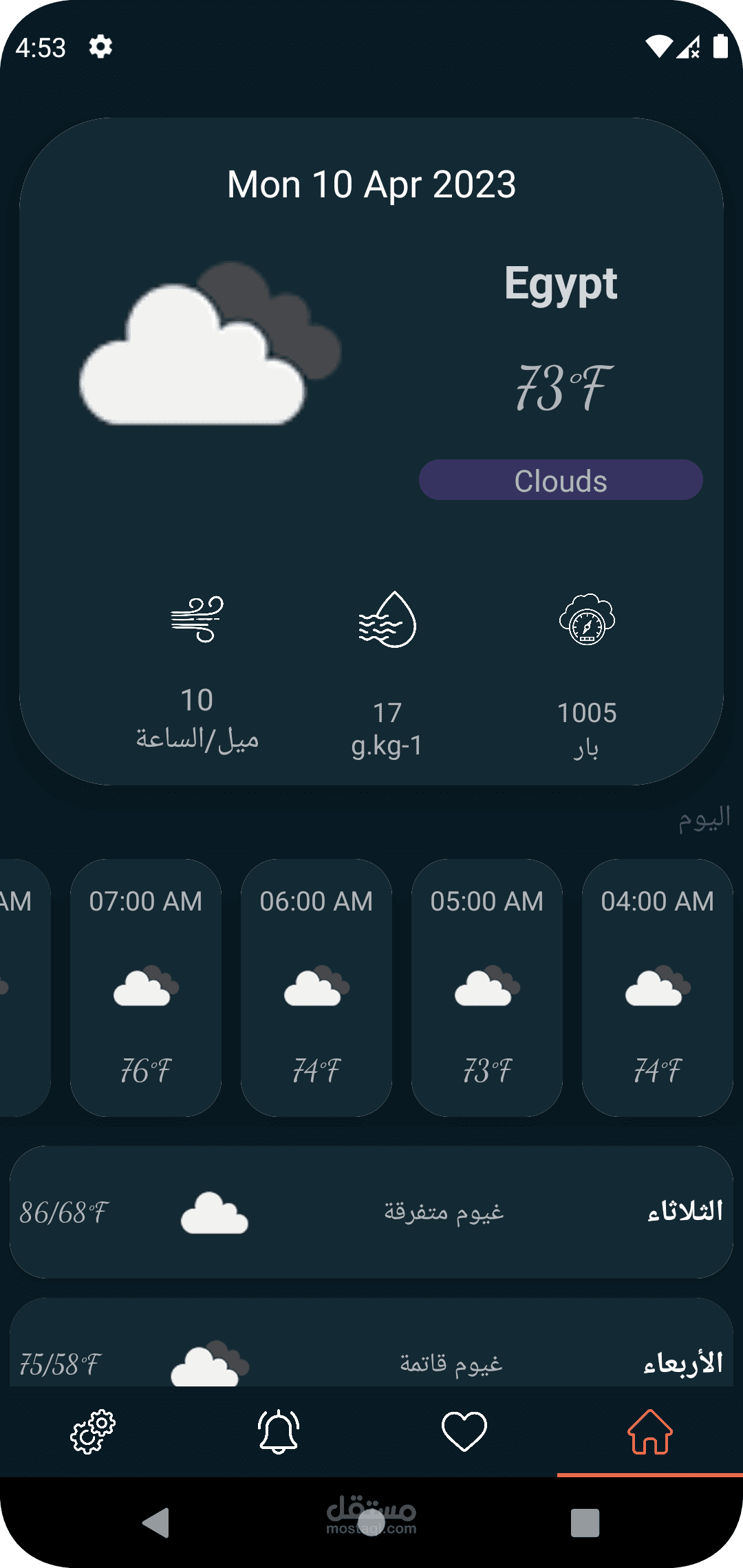تطبيق يقوم بوصف حالة الطقس مع اختلاف الاماكن و يمكن اختيلر العديد من الاماكن ب استخدام خريطة