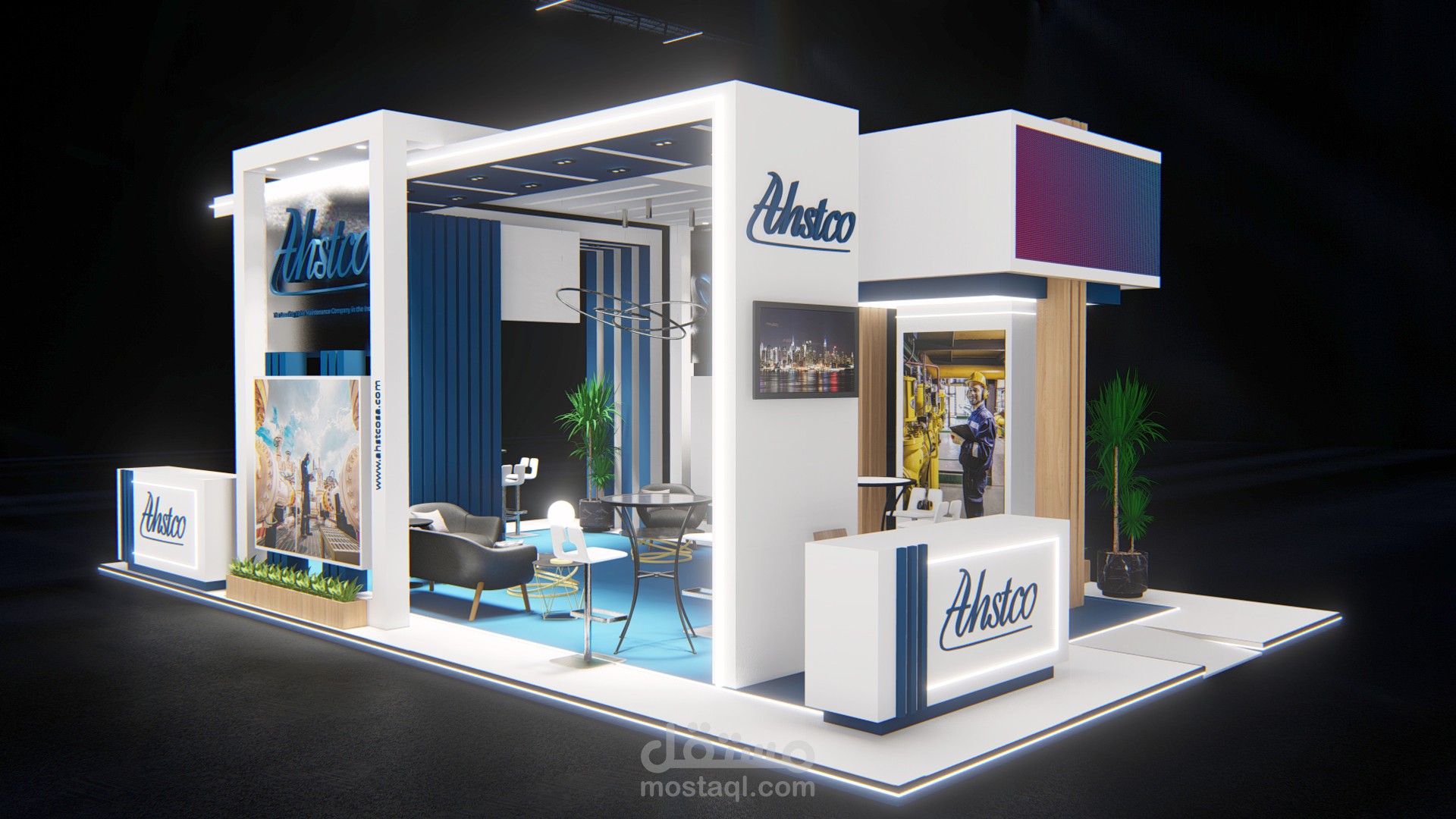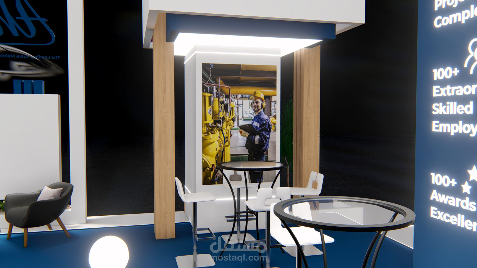 تصميم ثلاثي الأبعاد لجناح معرض مقاس 6متر * 10متر