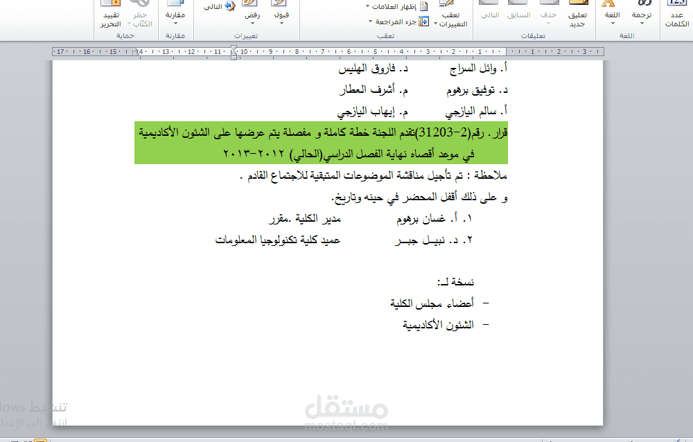 كتابة وتنسيق وتدقيق محضر اجتماع