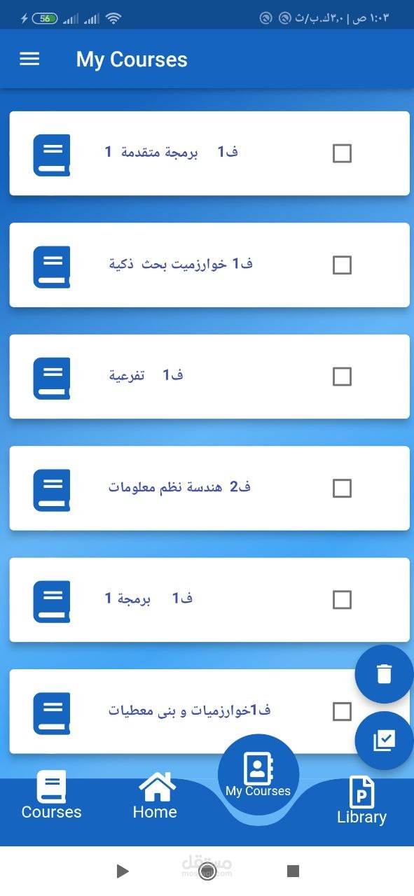 - My courses page : تتضمن المواد الدراسية التي اضافها الطالب الى مواده التي سيدرسها خلال العام الدراسي حيث يمكنه الاطلاع