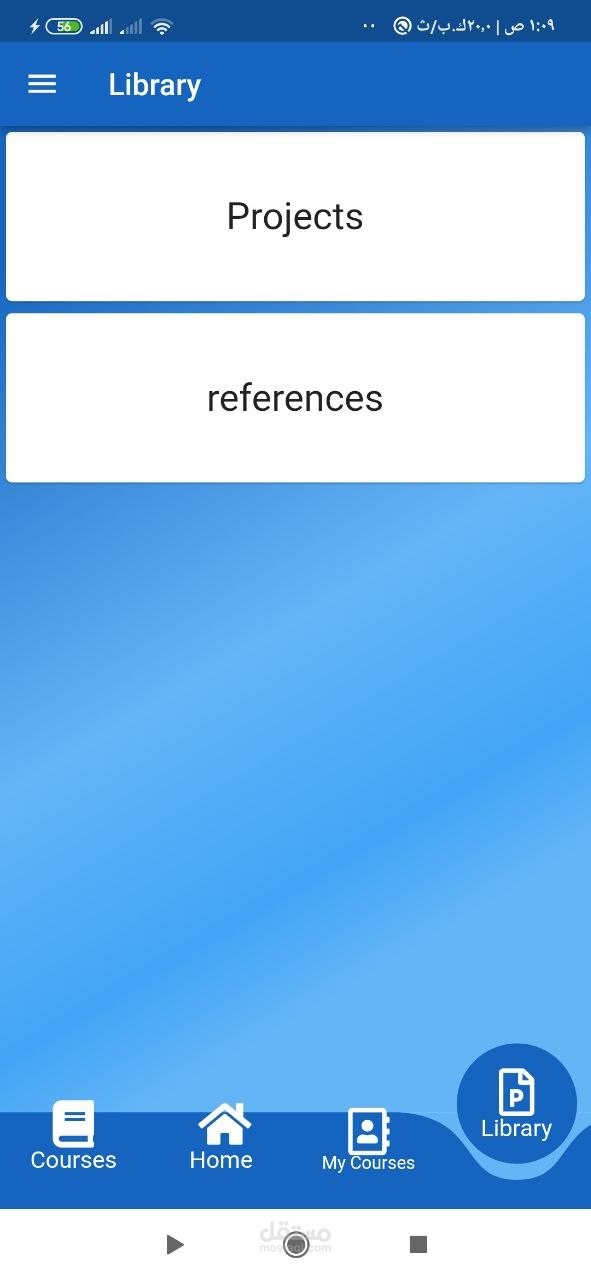 -library page : حيث يتمكن الطالب من الوصول الى محتويات مكتبة الجامعة وتحميل ملفات المراجع والابحاث.