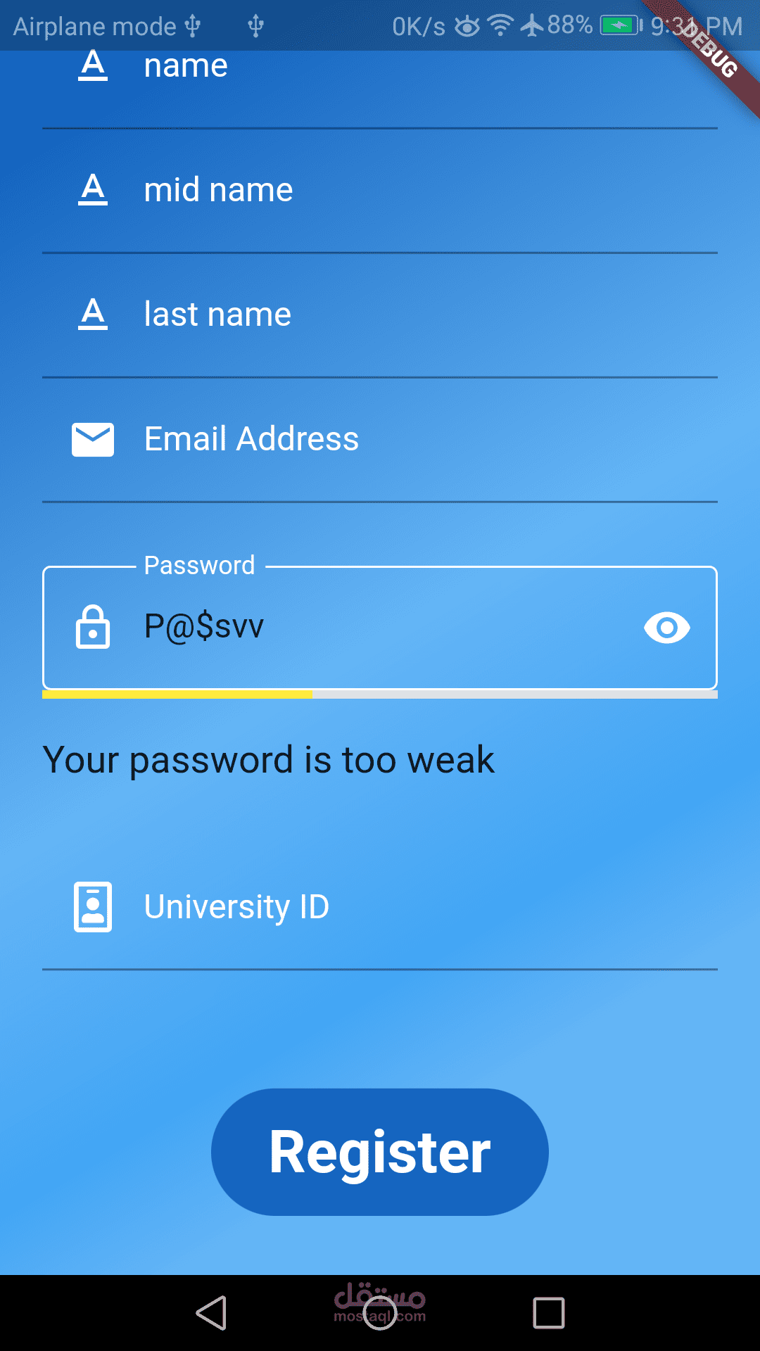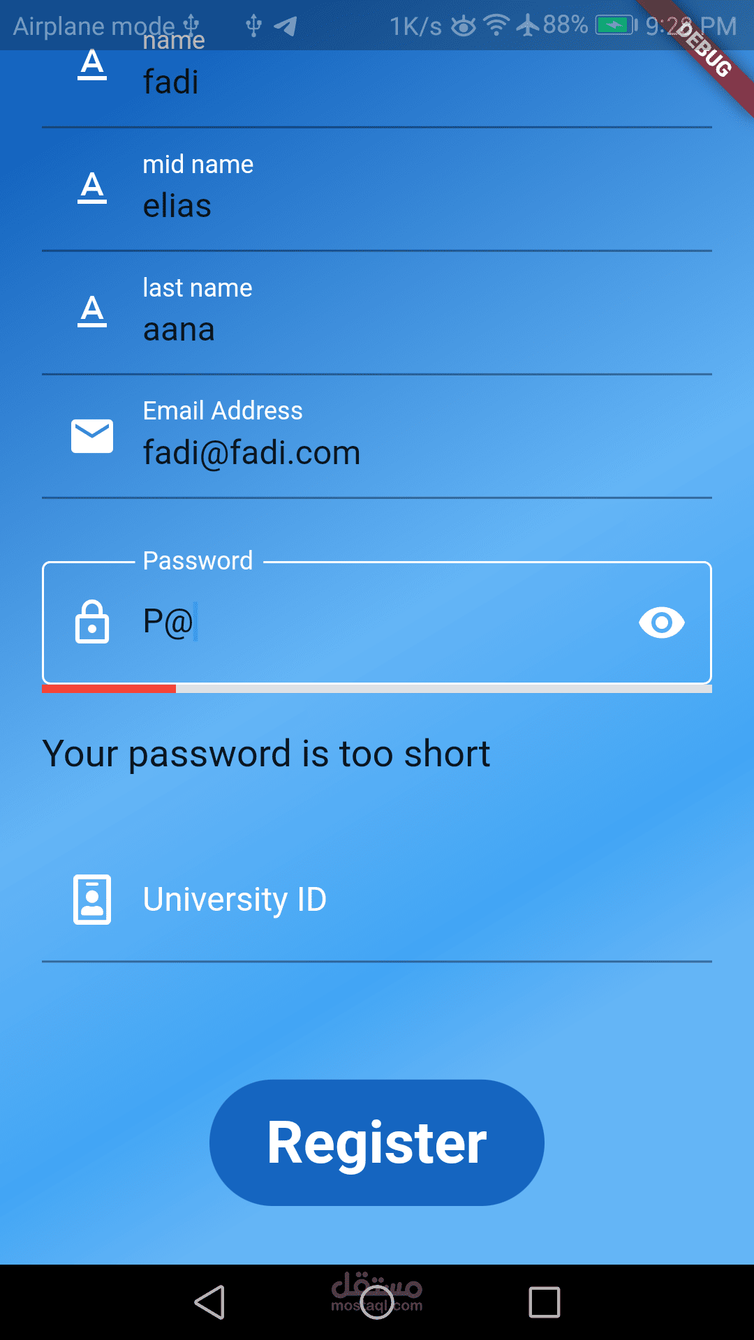 - profile page : عرض معلومات الطالب الذي سجل ضمن التطبيق عن طريق login او register, وتعديل بيانات سنته الدراسية.