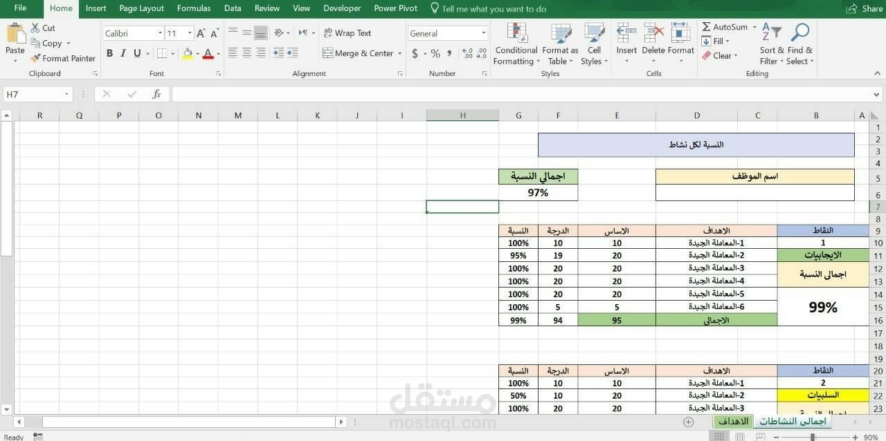 مع اضافة الايجابيات والسلبيات والتطور والتعلم لكل موظف .