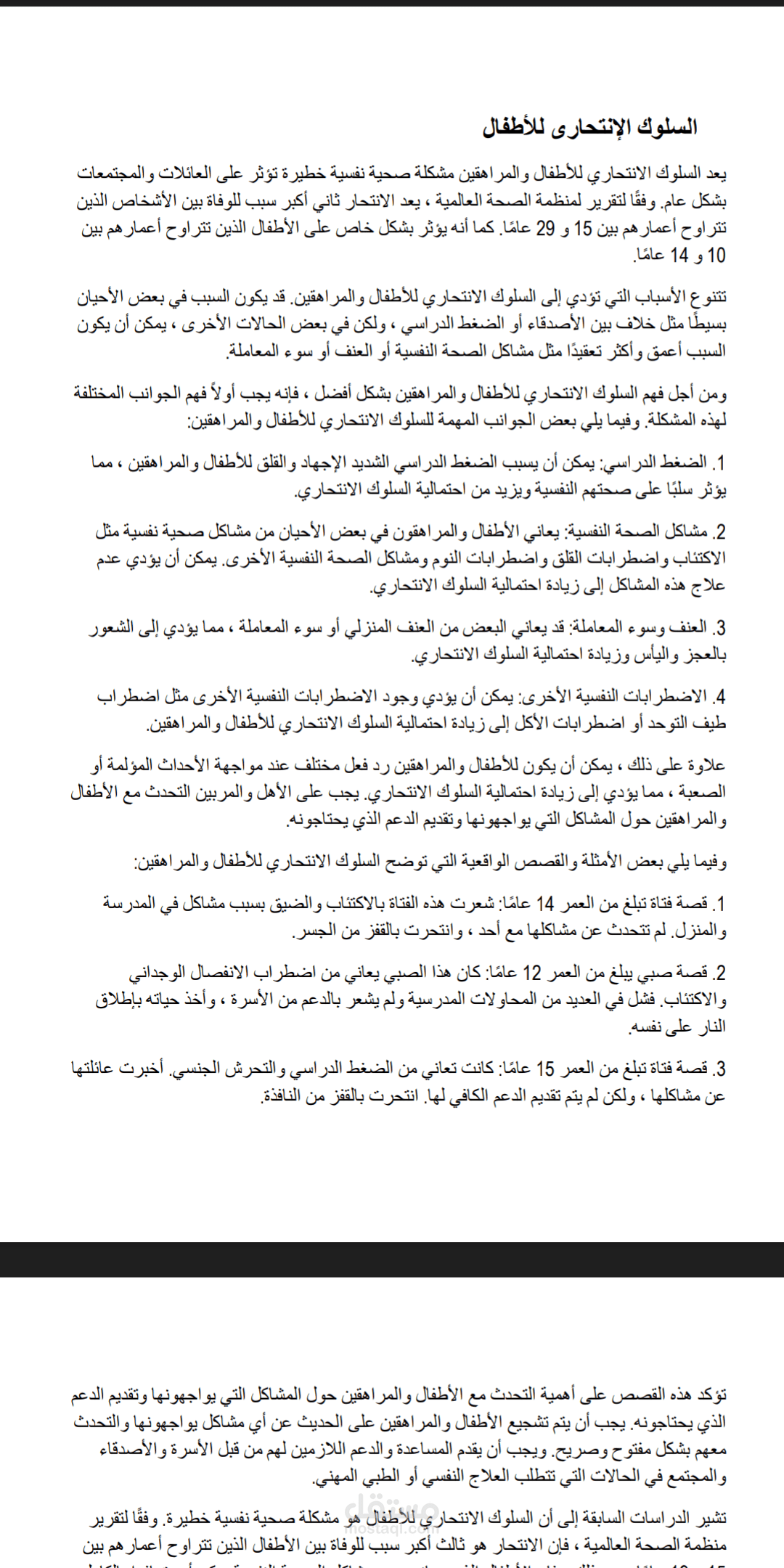 مقال عن السلوك الإنتحارى للأطفال
