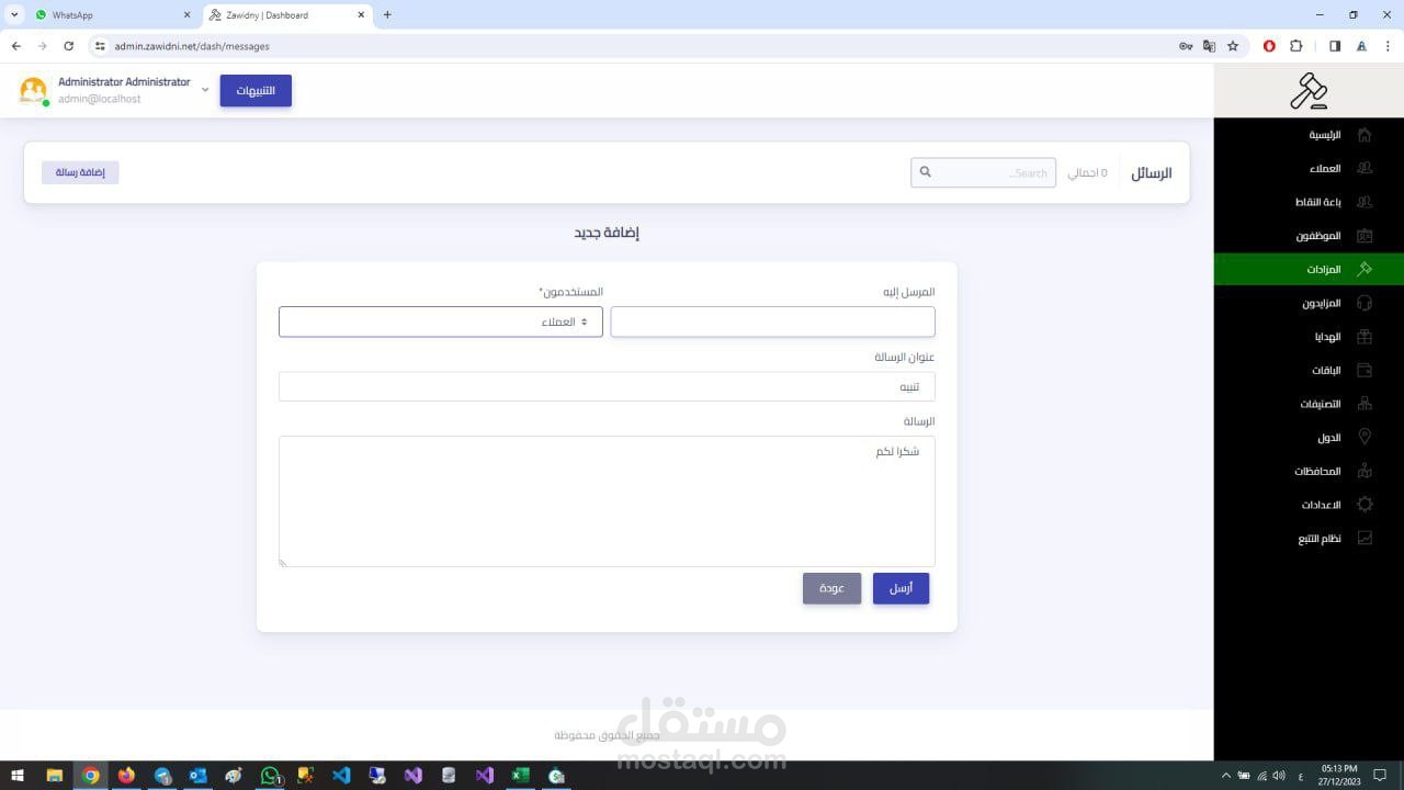 تطبيق جوال مزايدات مع لوحة التحكم ، تم إنشاؤه لشركة الأيهم العراقية ، مقرها الآن في إستنبول