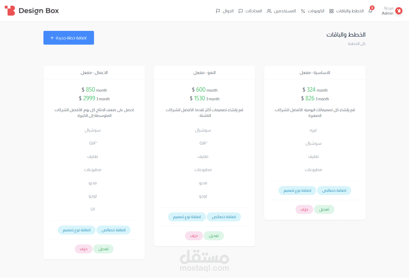 desginbox هي منصة خاصة خاصة بالمصممين تقدم خدمة الاشتراك في باقات التصميم لاصحاب البزنس والاعملاء يوجد بيها باقات ومحدثات العملاء مع المصممين وبوبة دفع فوتيرك وايضا api